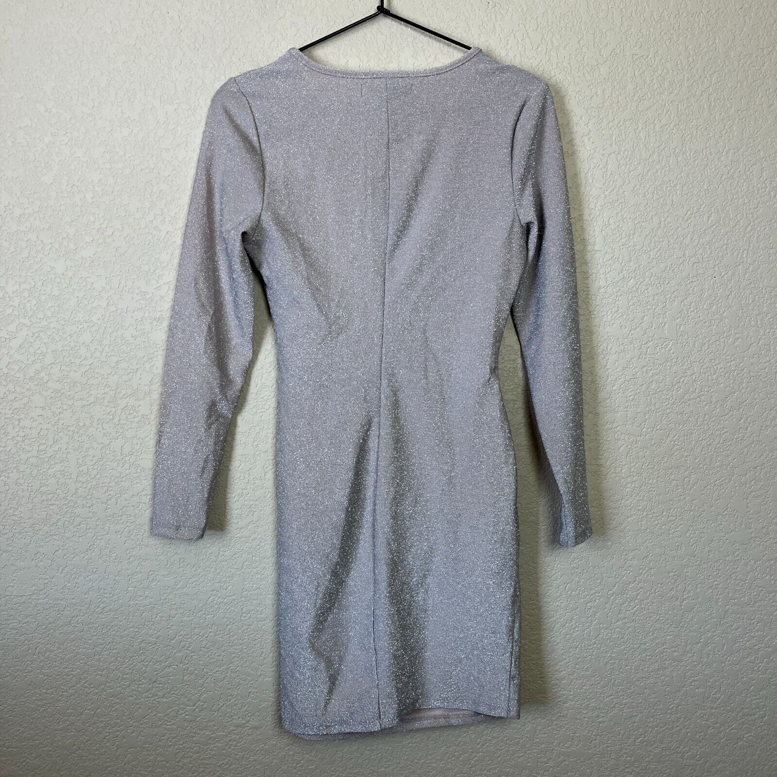 Bailey Blue Womens Sz S Sparkly Pink Faux Wrap Dress Long Sleeve