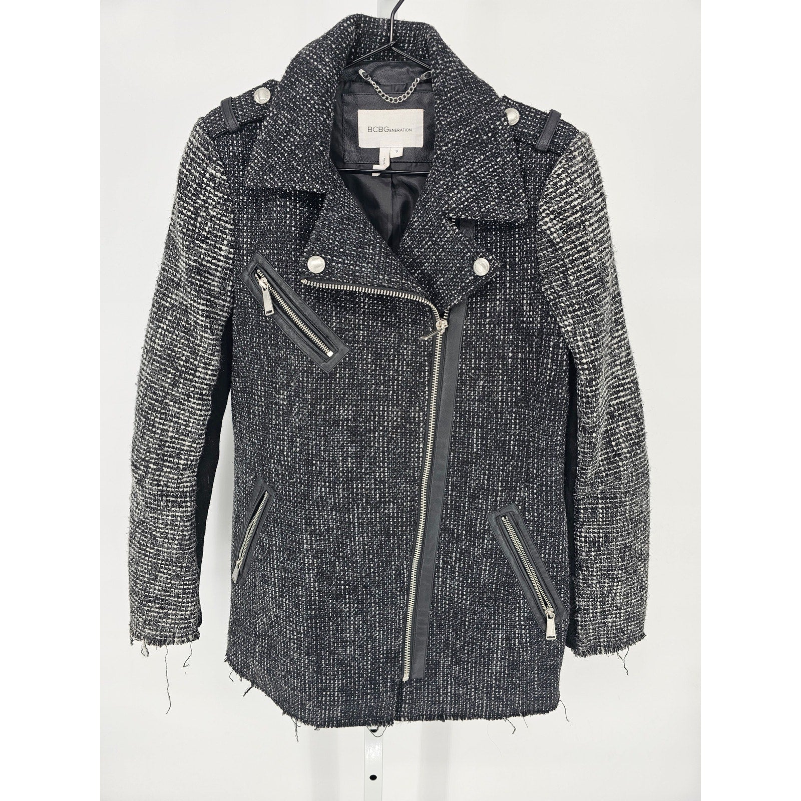 BCBGeneration Womens Sz S Hip Length Moto Jacket Asymmetrical Zip Gray Black