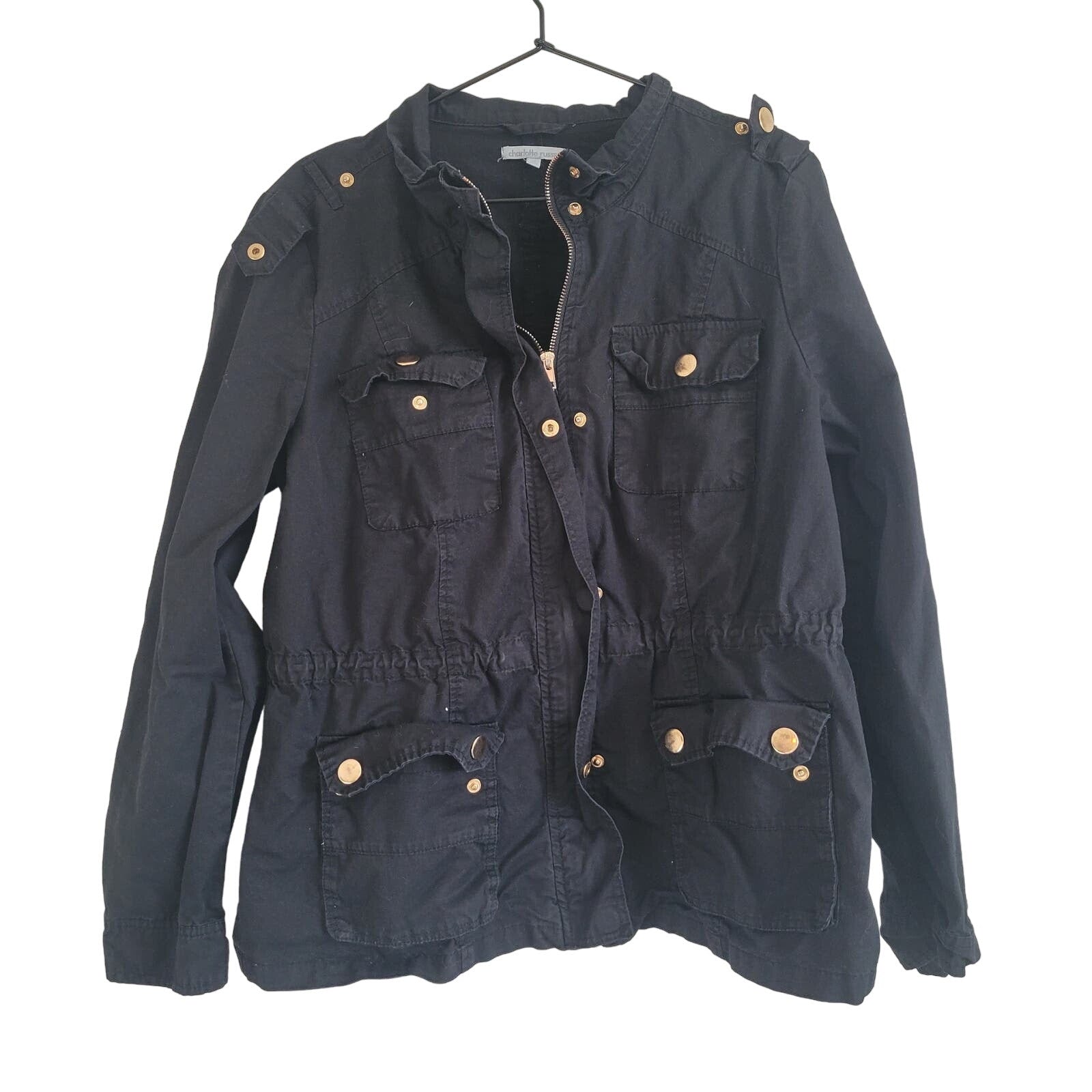 Charlotte Russe Womens Sz XL Safari Style Jacket Black Gold Hardware Zip Up