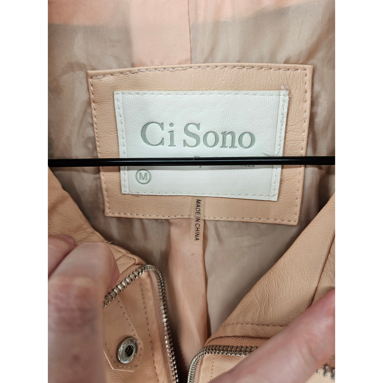 Ci Sono Womens Sz M Cropped Faux Leather Moto Jacket Blush Pink