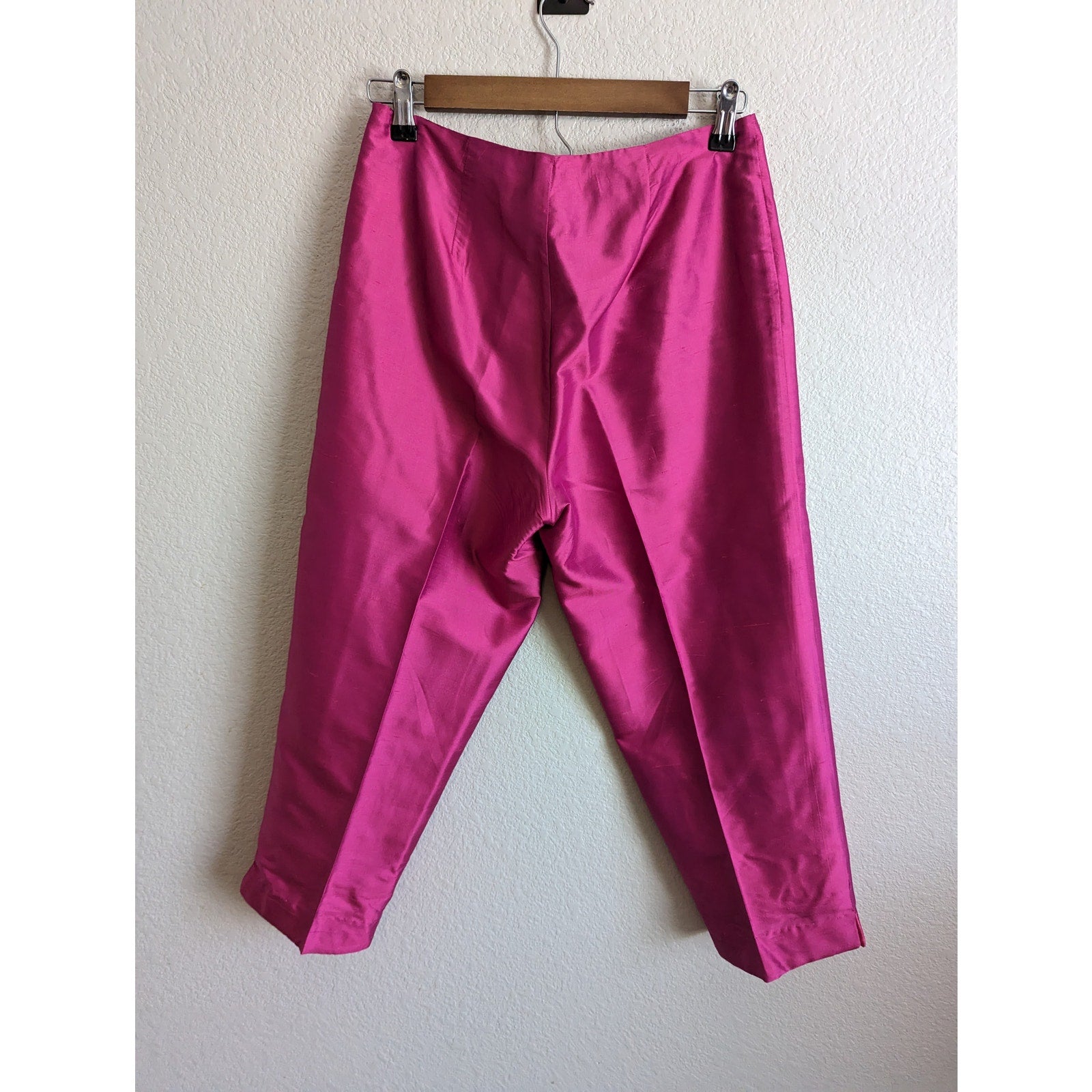 These bright pink silk pants from Clio Petites are a must-have addition to any fashion-forward woman's wardrobe. With a size 4 fit for women, these pants are made from 100% silk for a luxurious and comfortable feel. The vibrant pink color will make a statement no matter where they're worn, and the classic design ensures they'll never go out of style. Perfect for a night out on the town or dressed up for a special occasion, these pants are sure to turn heads. The attention to detail and quality craftsmanship make them a valuable addition to any collection. Don't miss out on the opportunity to own a pair of these stunning silk pants from Clio Petites.
