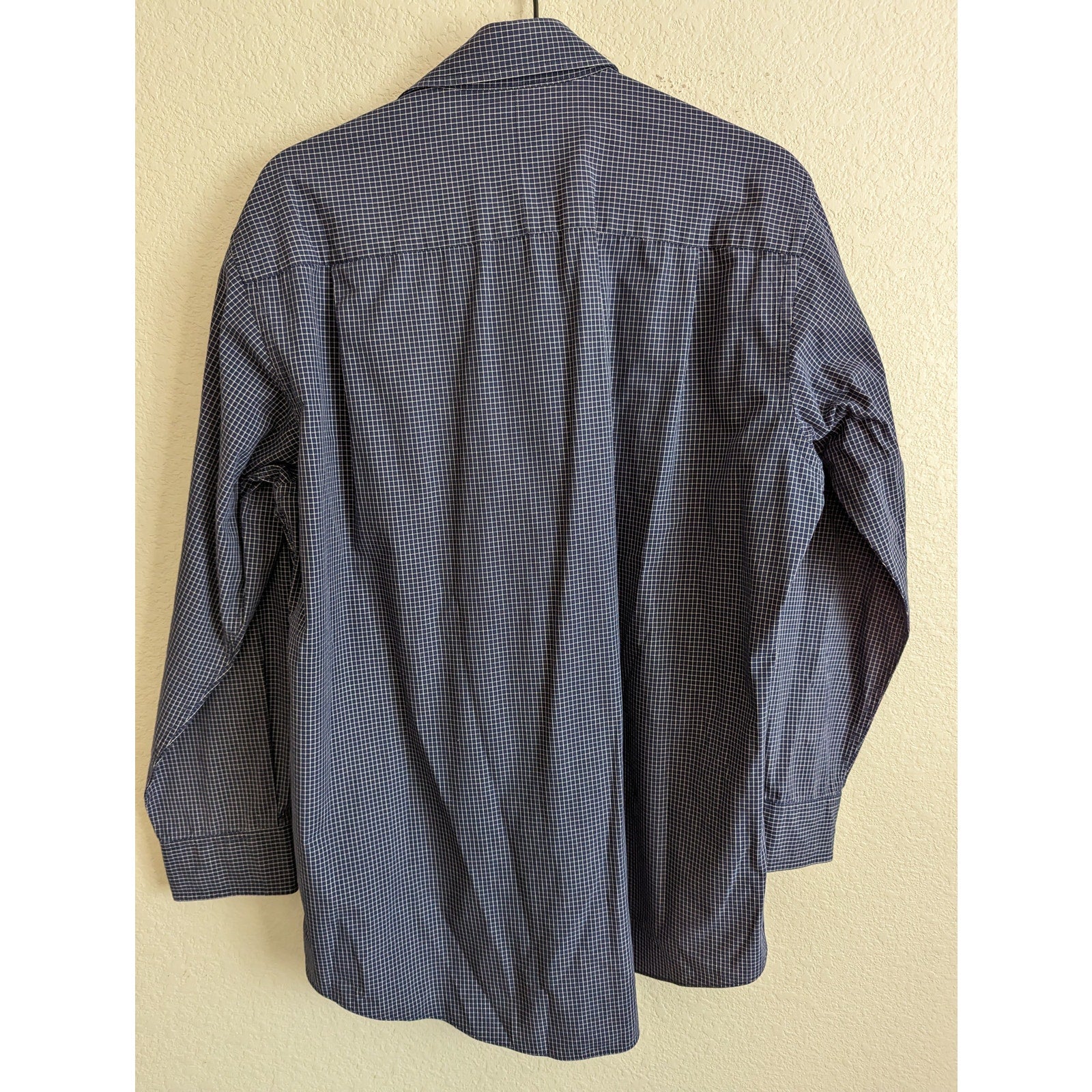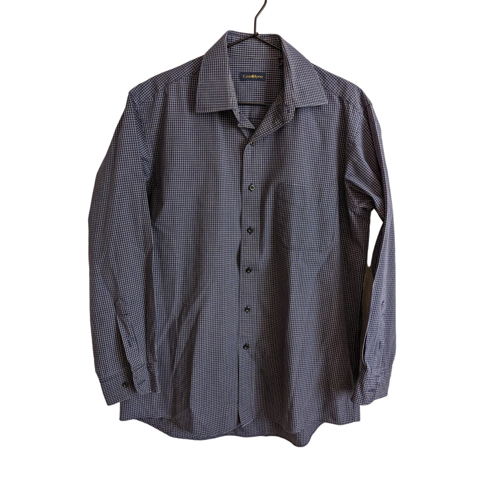 Club Room Mens Sz 15 1/2 - 32/33 Button Down Dress Shirt Blue Windowpane Plaid