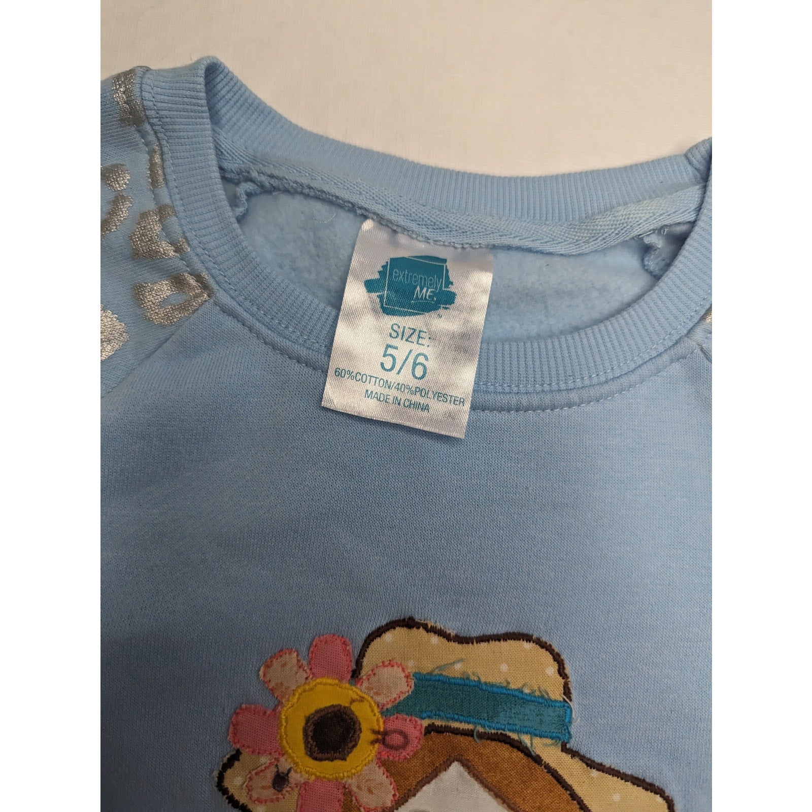 Extremely Me Girls Sz S (5/6) Pullover Sweatshirt Blue farm Girl Embroidered