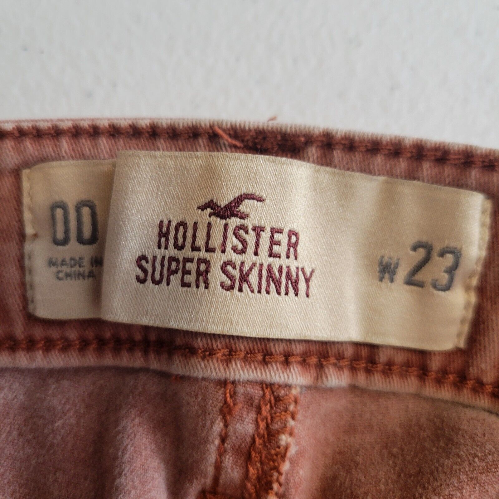 Elevate your wardrobe with these Hollister super skinny jeans in a beautiful blush dusty rose pink color. Designed for women, these jeans have a regular size fit with a size of 23. The skinny style and rose theme add a touch of elegance to your overall look. Perfect for any occasion, these jeans belong in your closet!