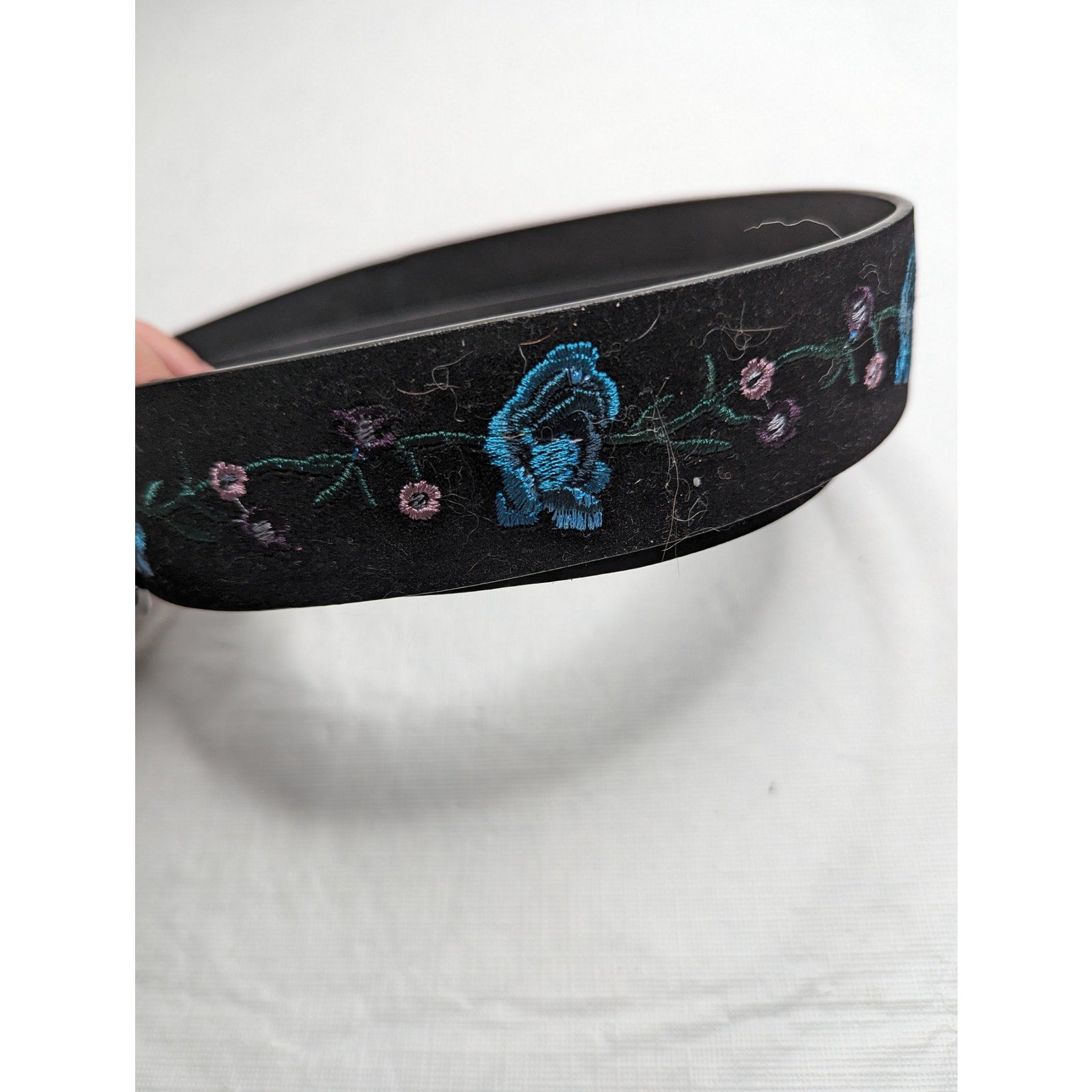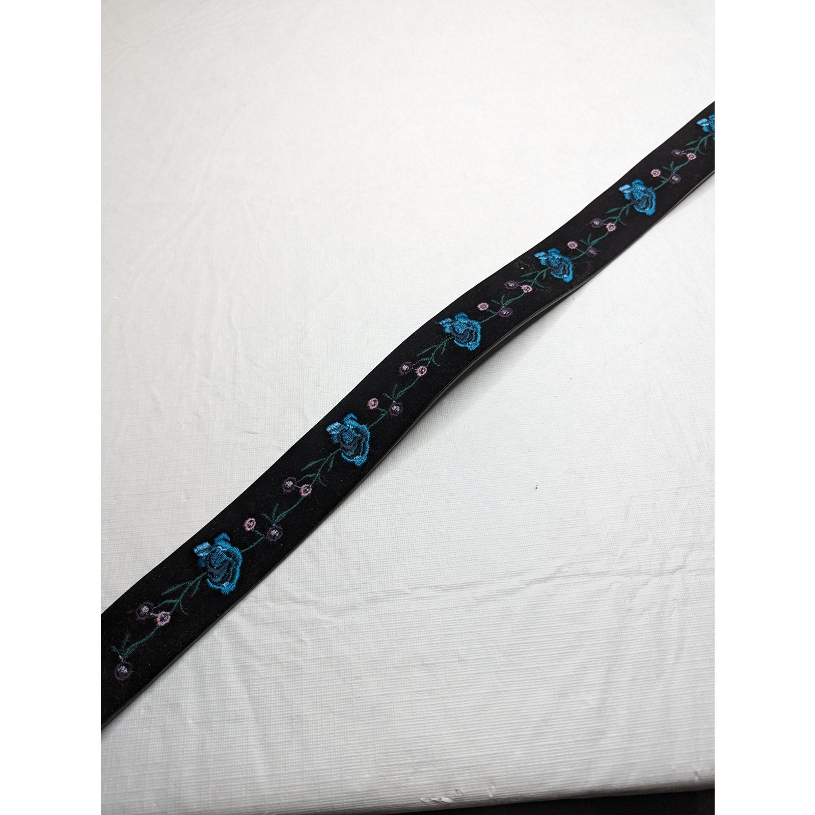 Hot Topic Womens Sz L Black Velvet Belt Embroidered Flowers