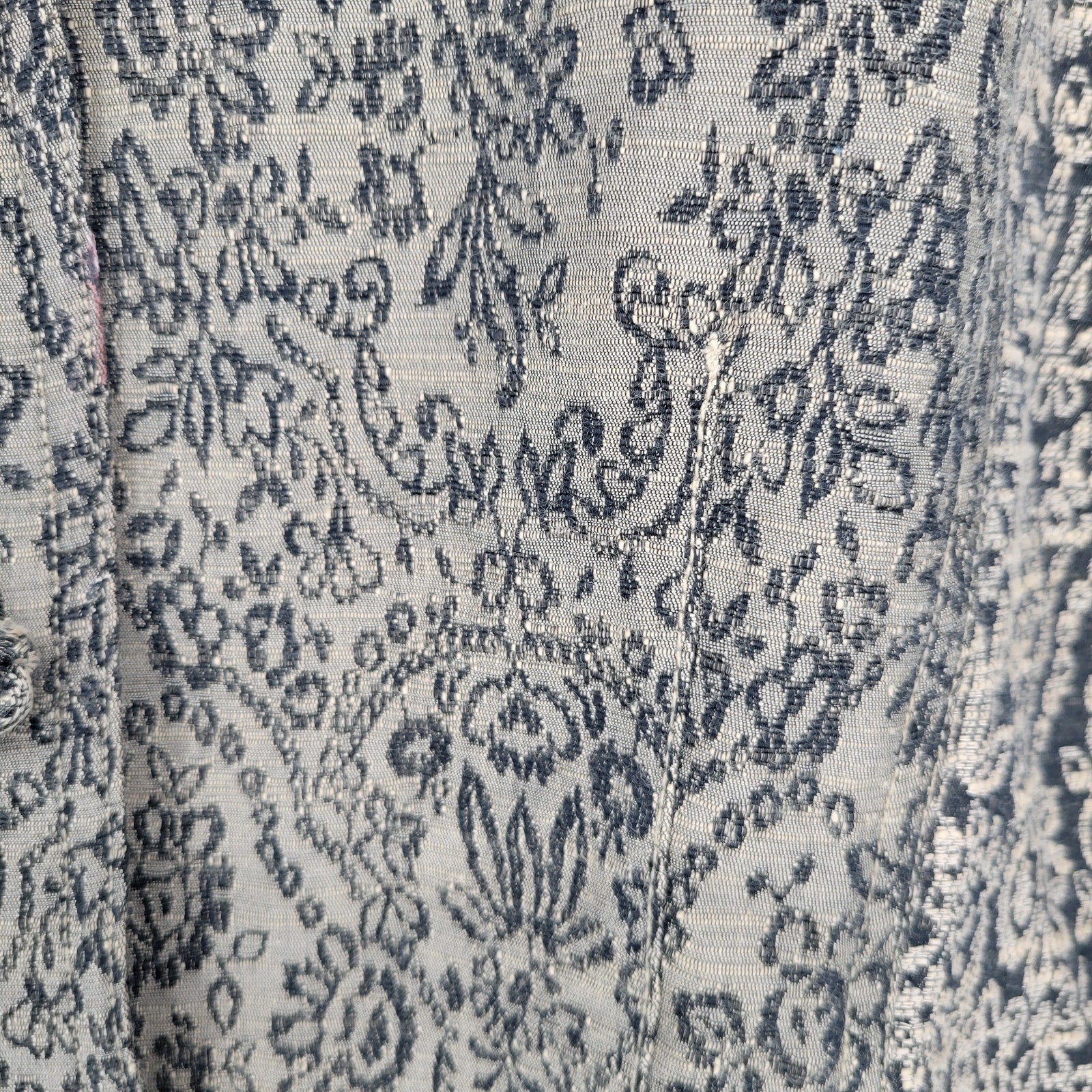 This J Jill women's jacket is sure to be a showstopper at any event. The beige and black floral design is unique and eye-catching. The jacket buttons up to give it a formal look. The tapestry style adds an elegant touch to this piece and is perfect for anyone looking to make a statement. The jacket is comfortable and stylish, making it a great addition to any wardrobe.