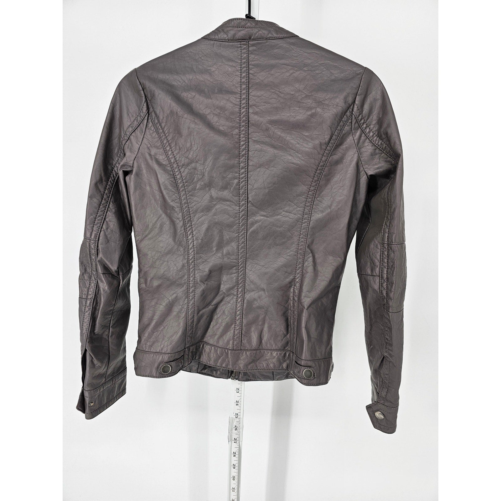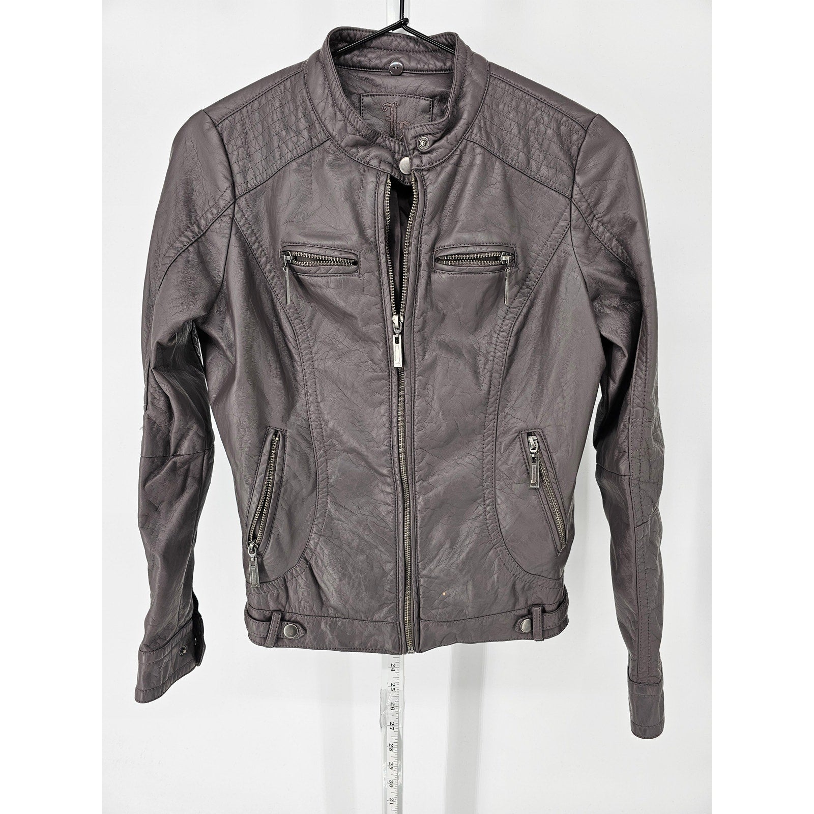 J2 Womens Sz S Cropped Faux Leather Moto Jacket Full Zip Brown
