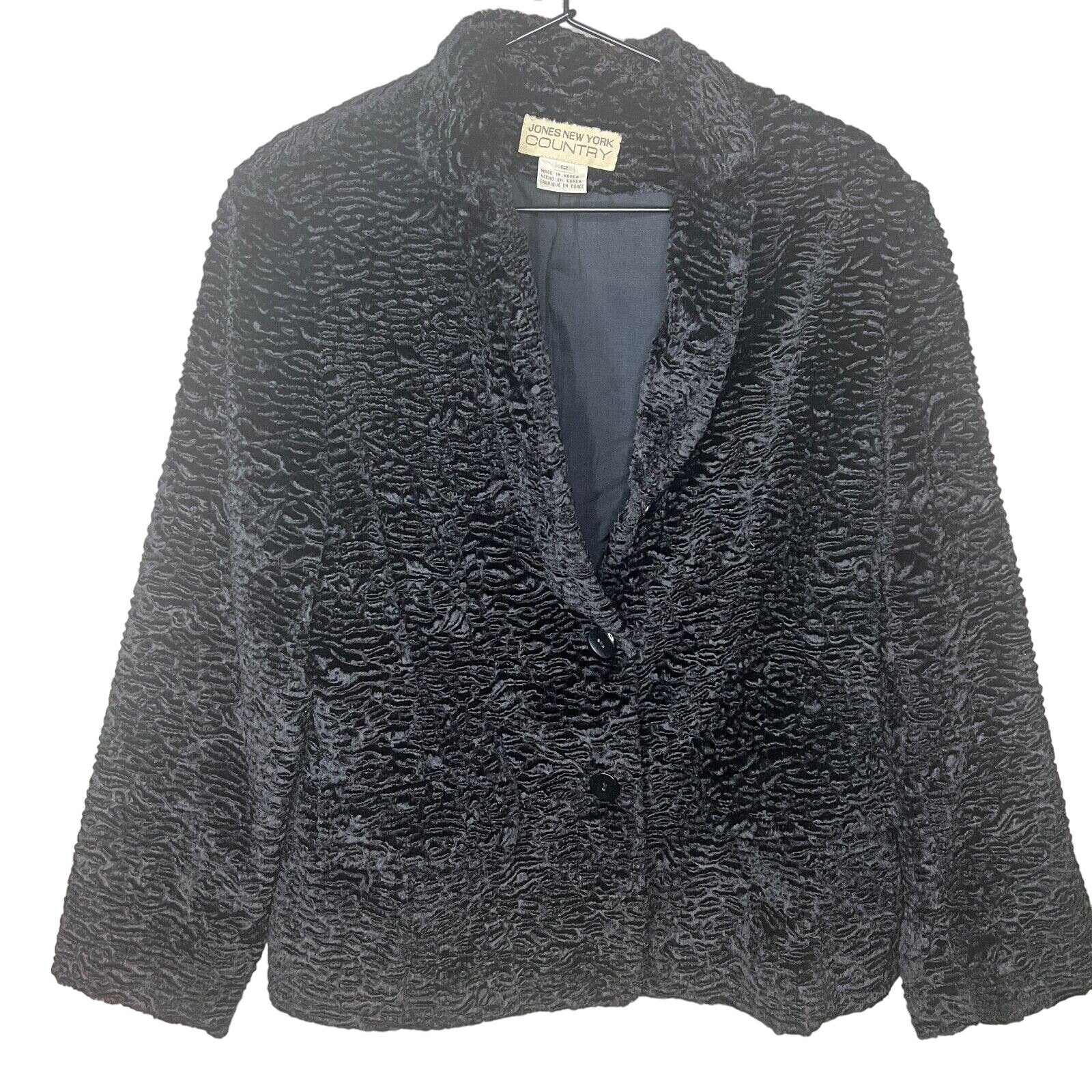 Jones New York Country Vintage Womens 2 Button Jacket Black Ruched