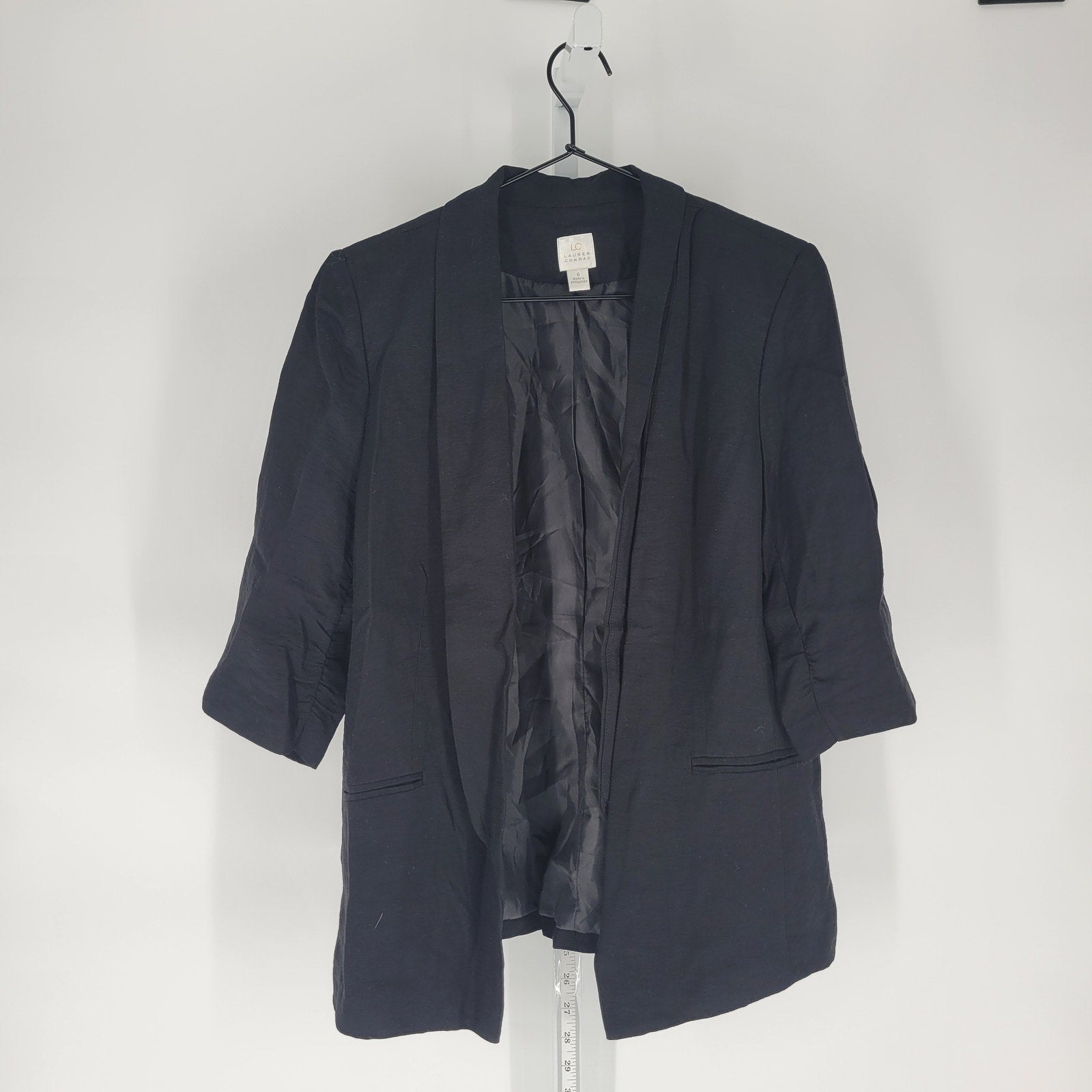 LC Lauren Conrad Womens Sz 6 3/4 Sleeve Open Front Blazer Jacket Black
