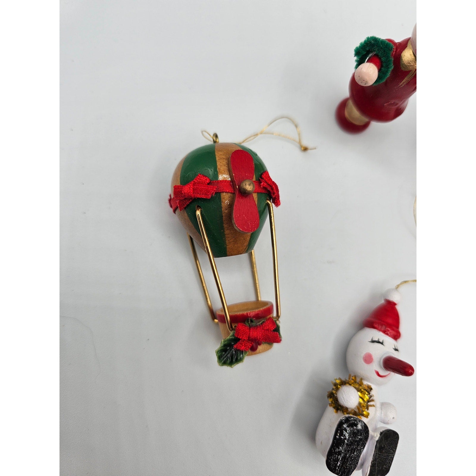 Lot of 5 Vintage Hand Painted Wooden Christas Ornaments Hot Air Balloon Santa