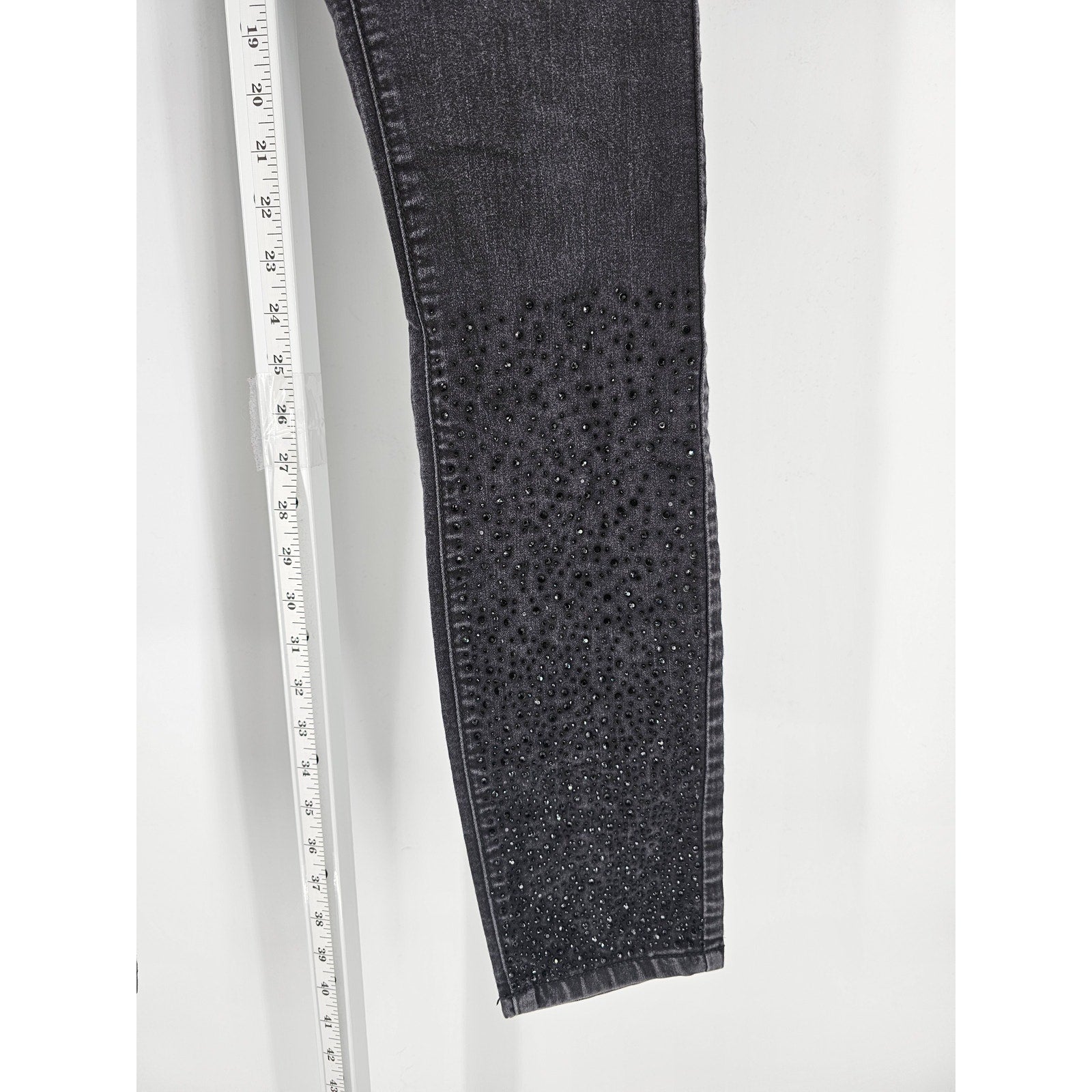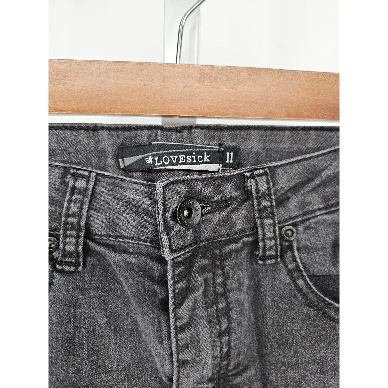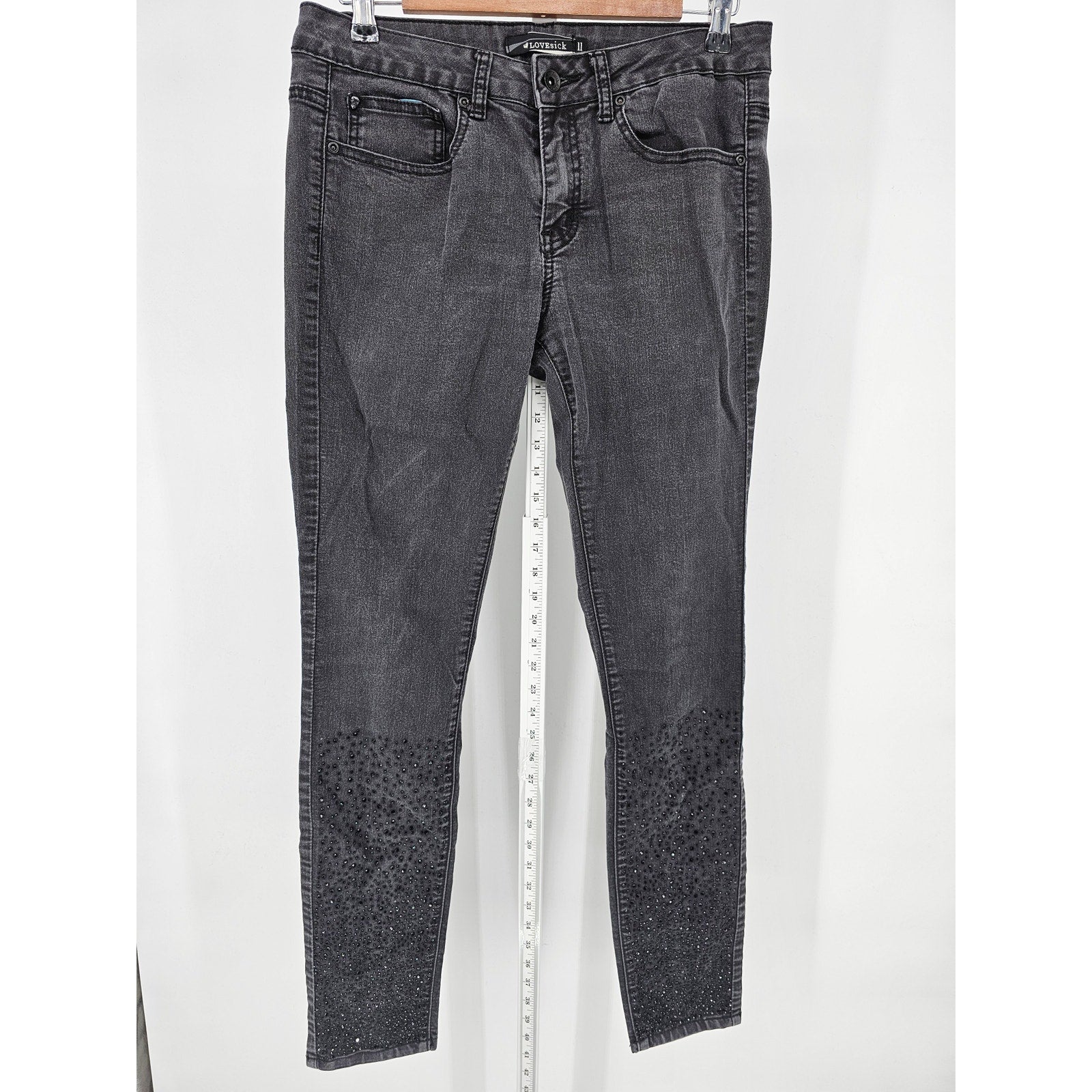 Lovesick Juniors Sz 11 Black Gray Skinny Jeans Low Rise Rhinestone Details