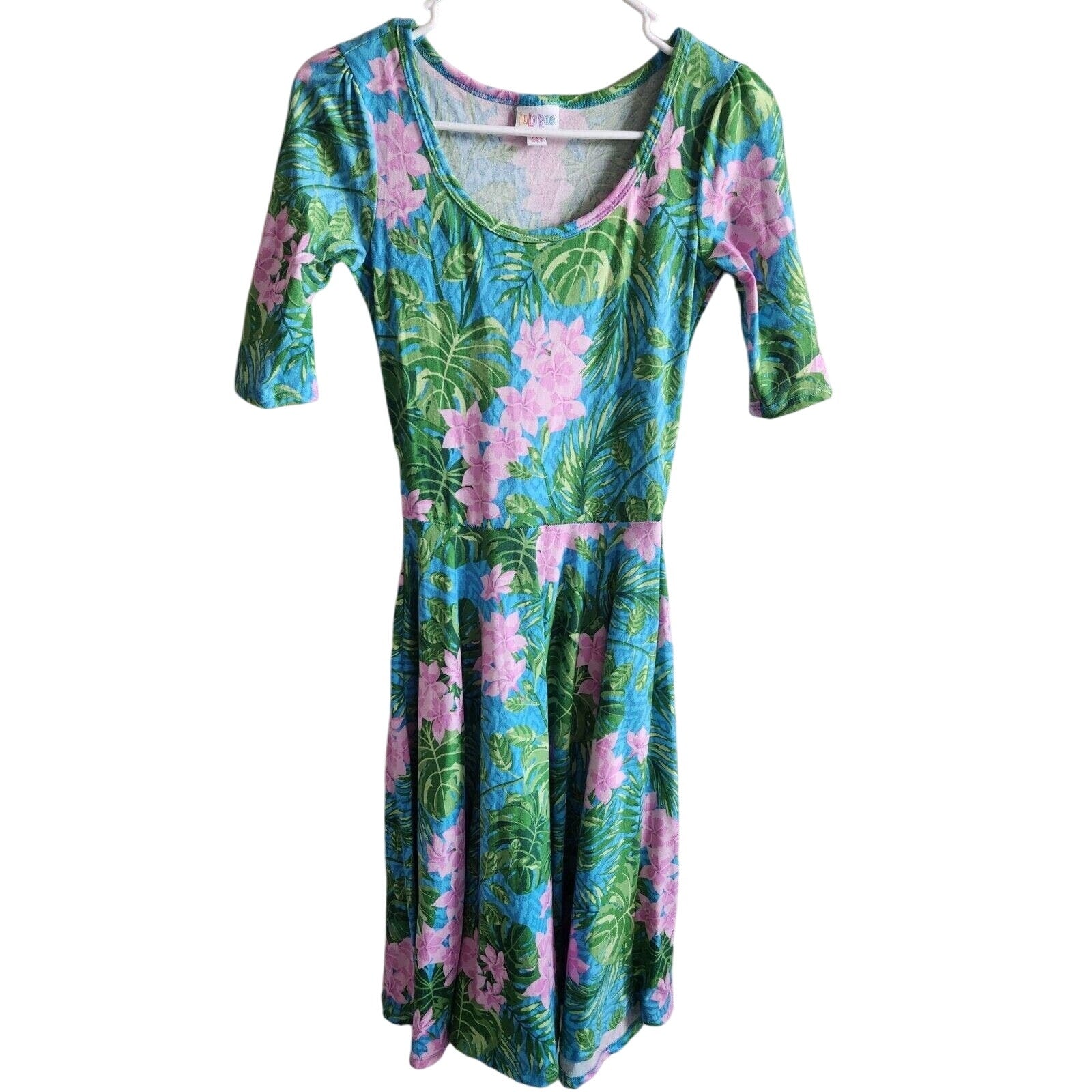 Lularoe Womens Sz XXS Knee Length A Line Dress Pink Green Floral