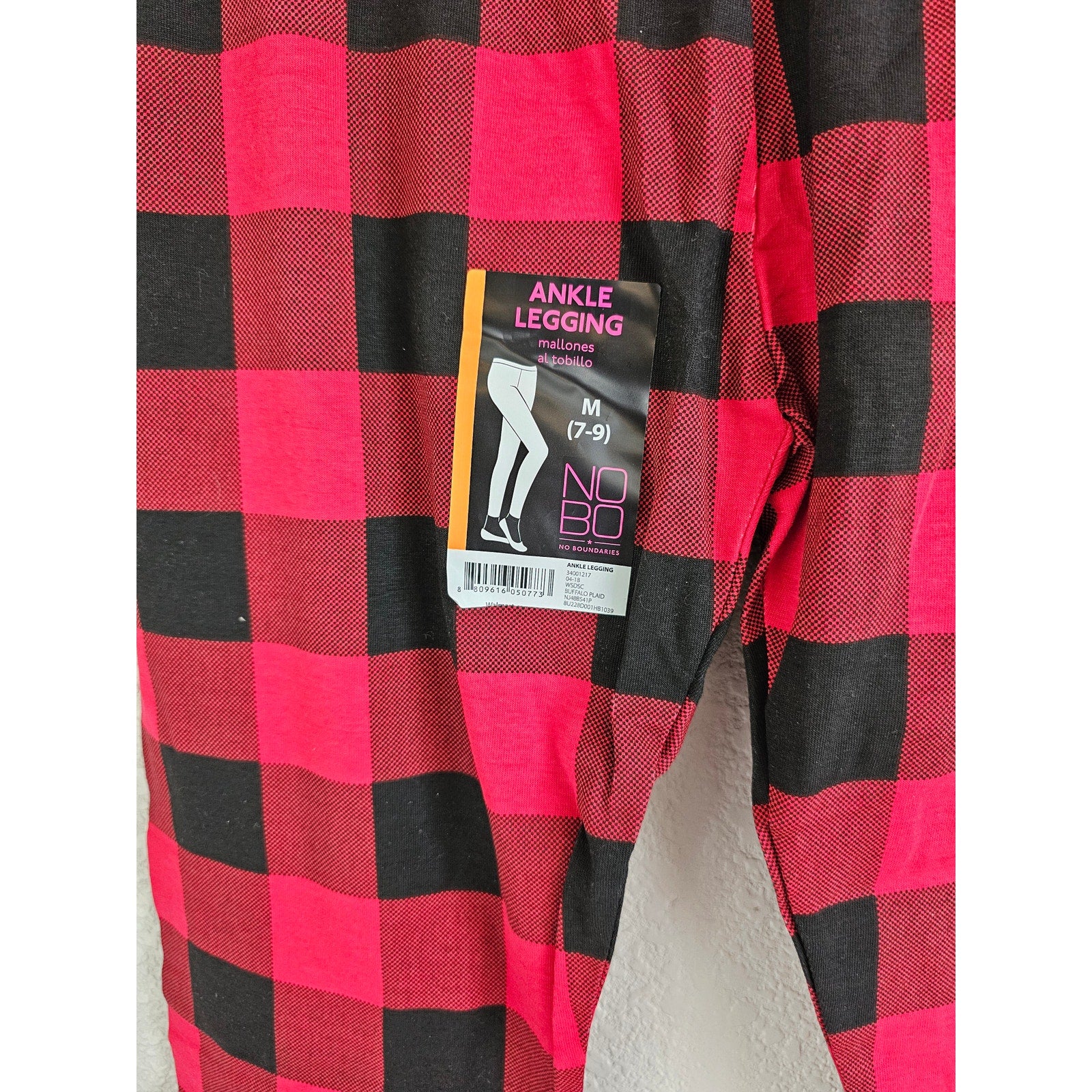 No Boundaries Juniors Sz M Ankle Leggings Black Red Buffalo Plaid
