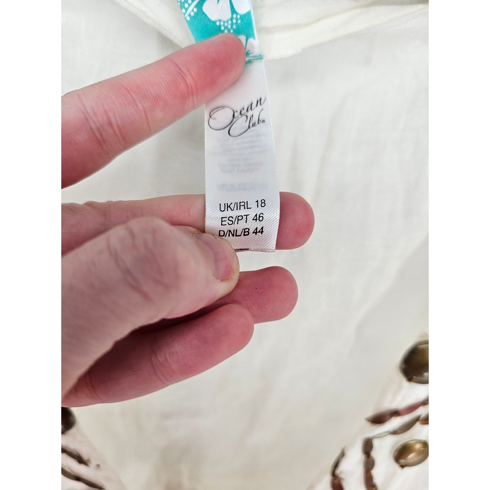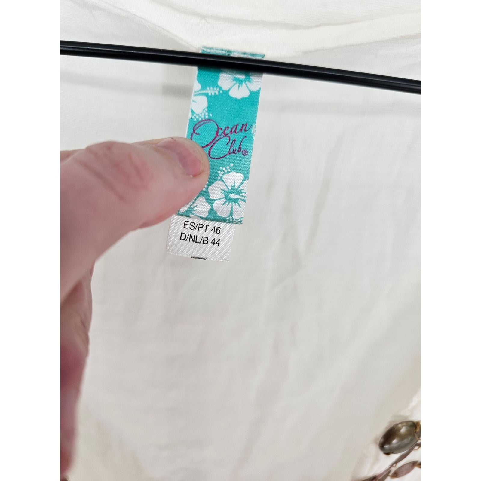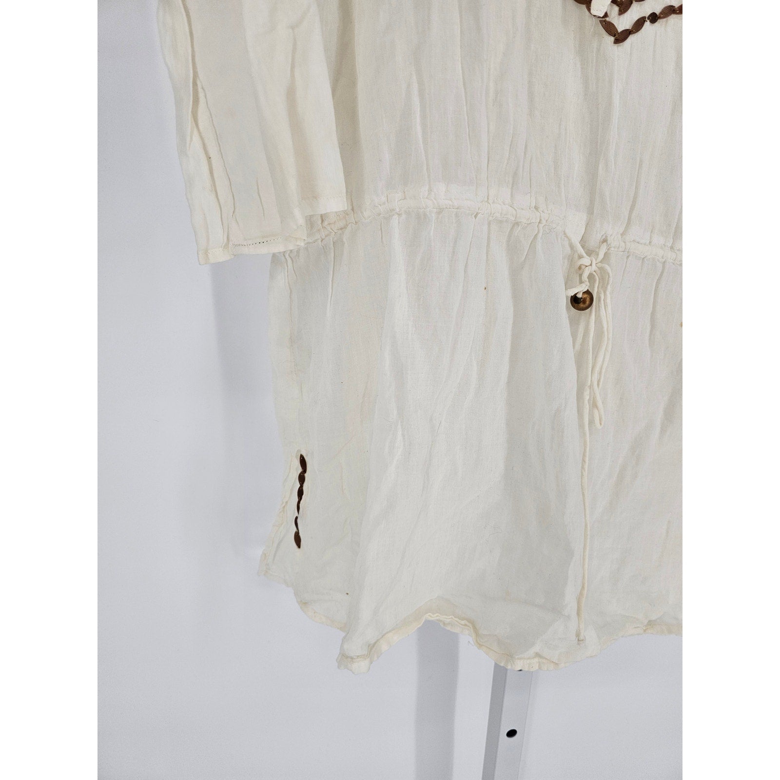 Ocean Club Womens Sz M Swimsuit Cover Up Cream Brown Embroidered Deep V