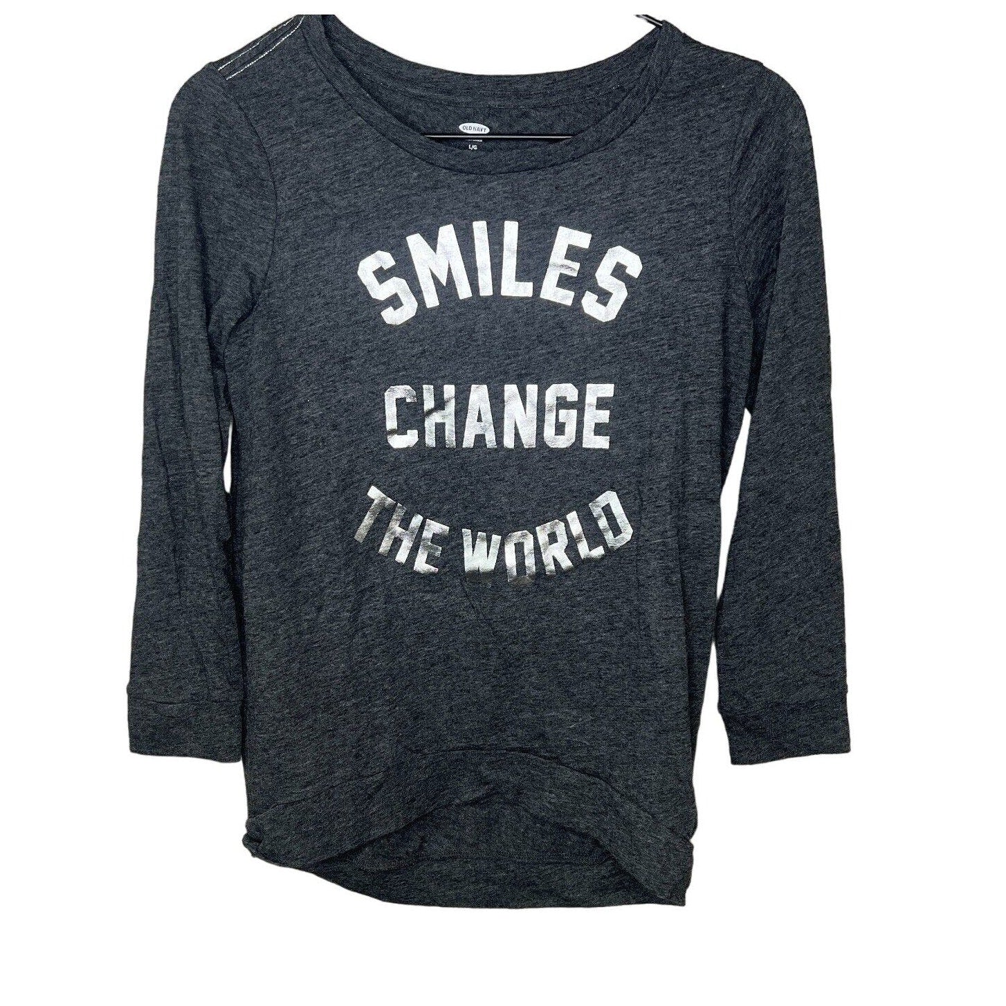 Old Navy Girls Sz L Long Sleeve T Shirt Smiles Change the World Gray