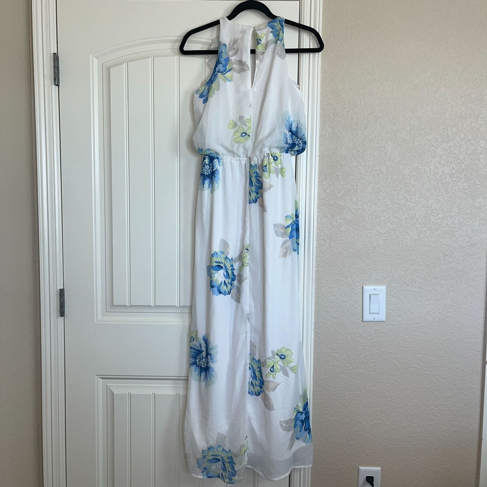 Old Navy Womens Sz M Maxi Dress Sleeveless White Blue Floral