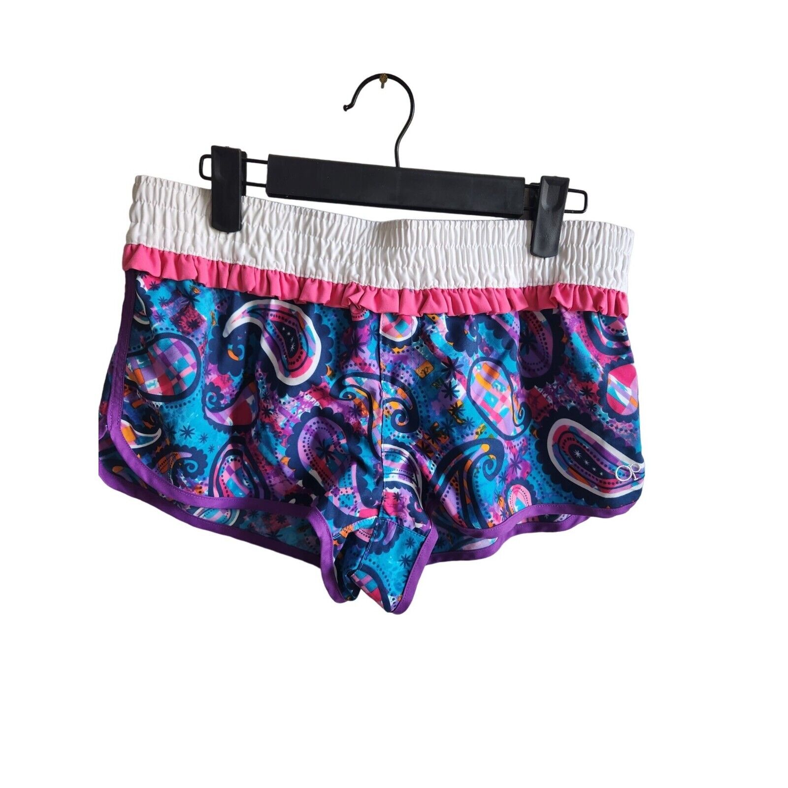 OP Juniors Sz M Pull On Athletic Water Shorts Bright Purple Pink Paisley
