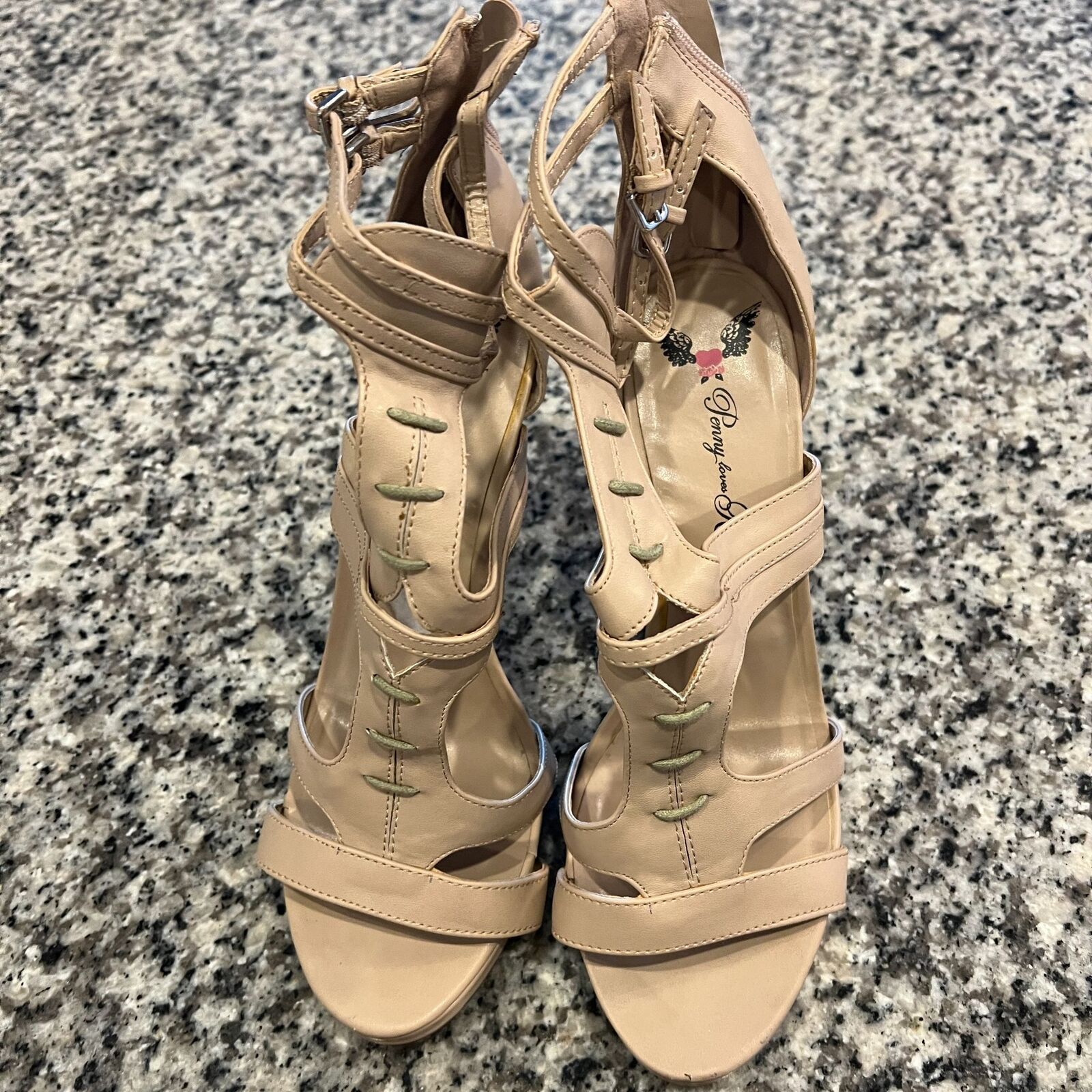 Penny Loves Kenny Womens Sz 10 High Heels Beige Strappy