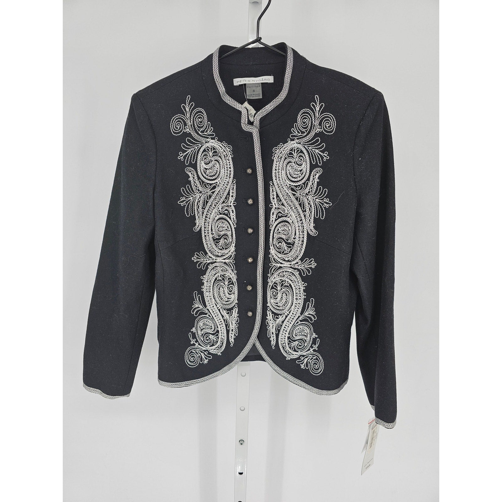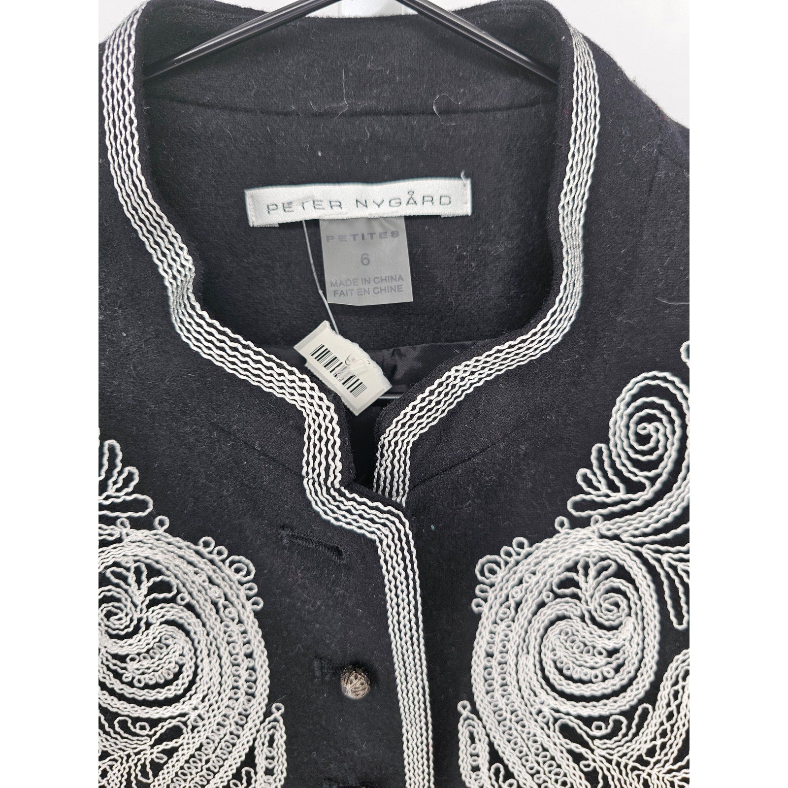 Peter Nygard Womens Sz 6P Petite Black and White Embroidered Blazer Jacket NEW