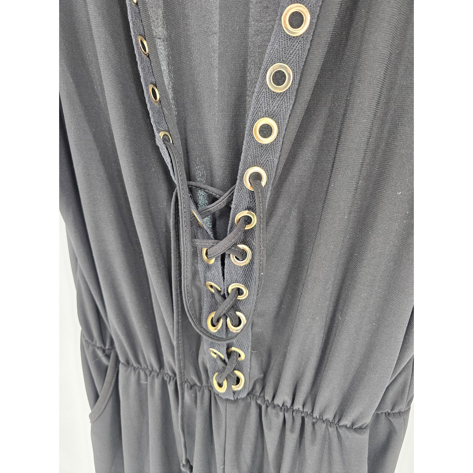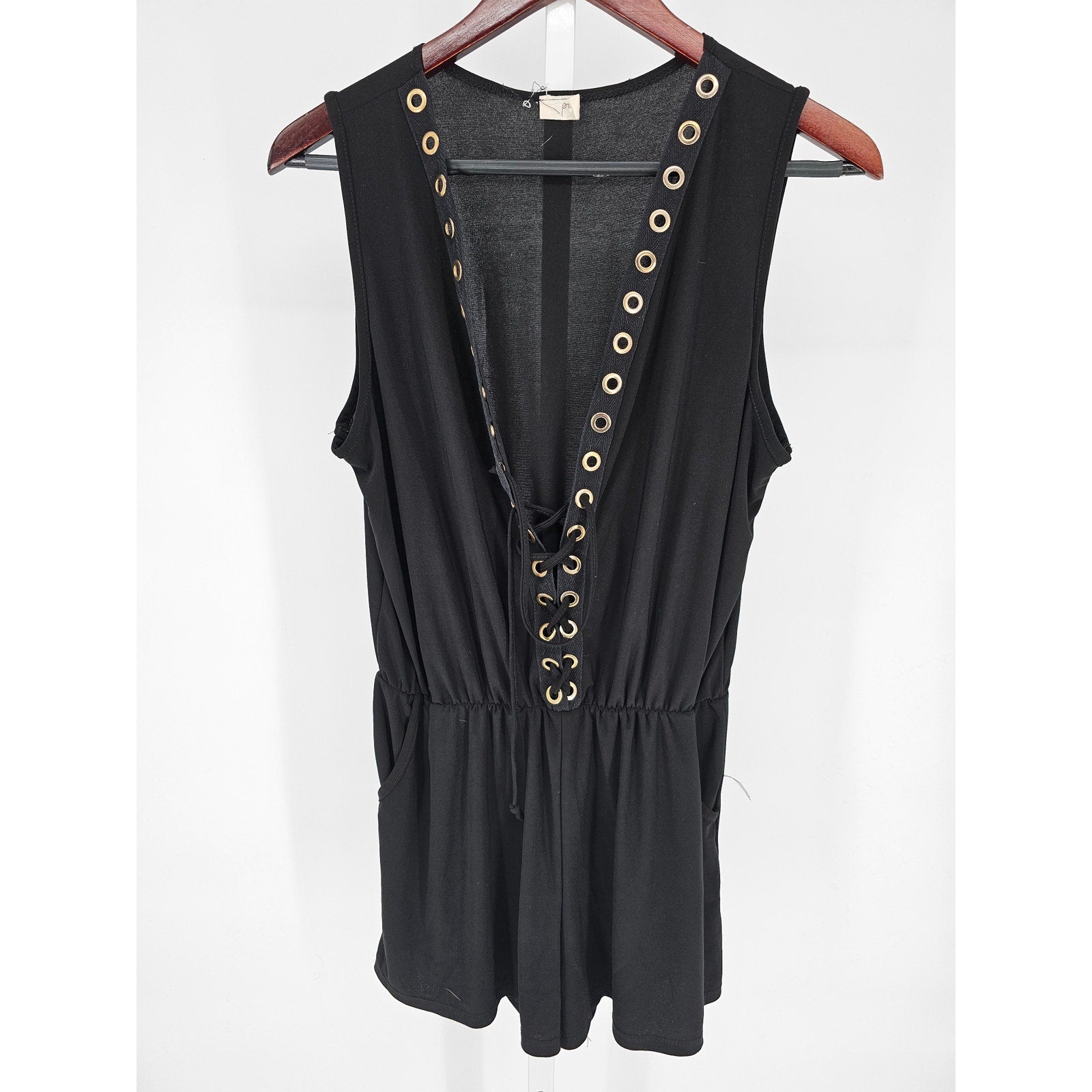 PINC Womens Sz L Swimsuit Cover Up Romper Black Gold Lace Up