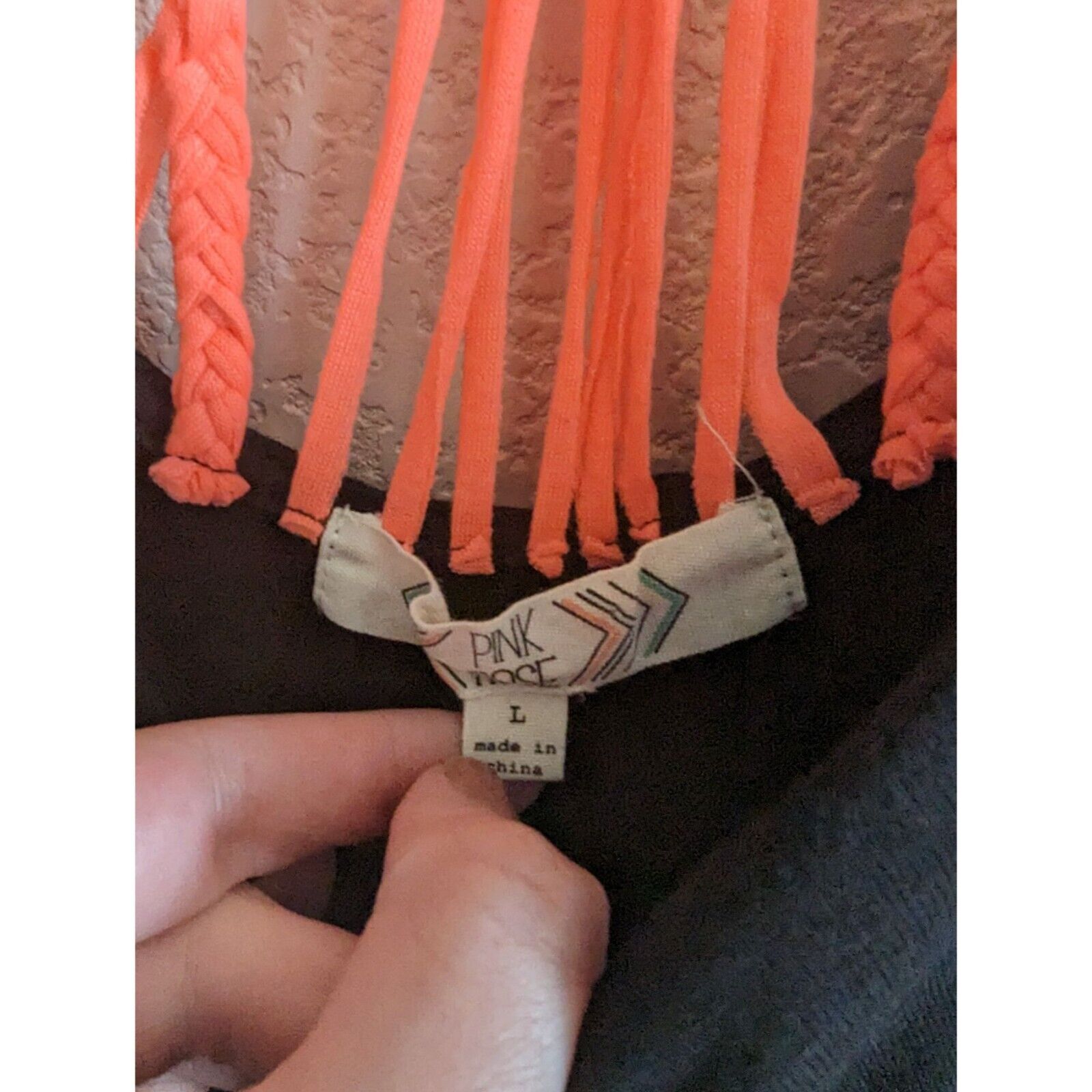 Pink Rose Womens Sz L Gray and Orange Strappy Midi Dress Jersey Knit