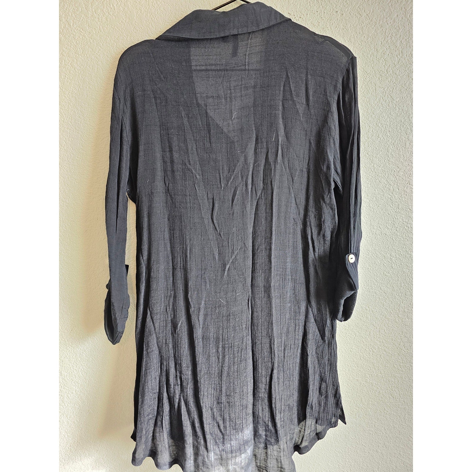 Portocruz Womens Sz M Long Sleeve Swimsuit Cover Up Black Gauzy Knee Length