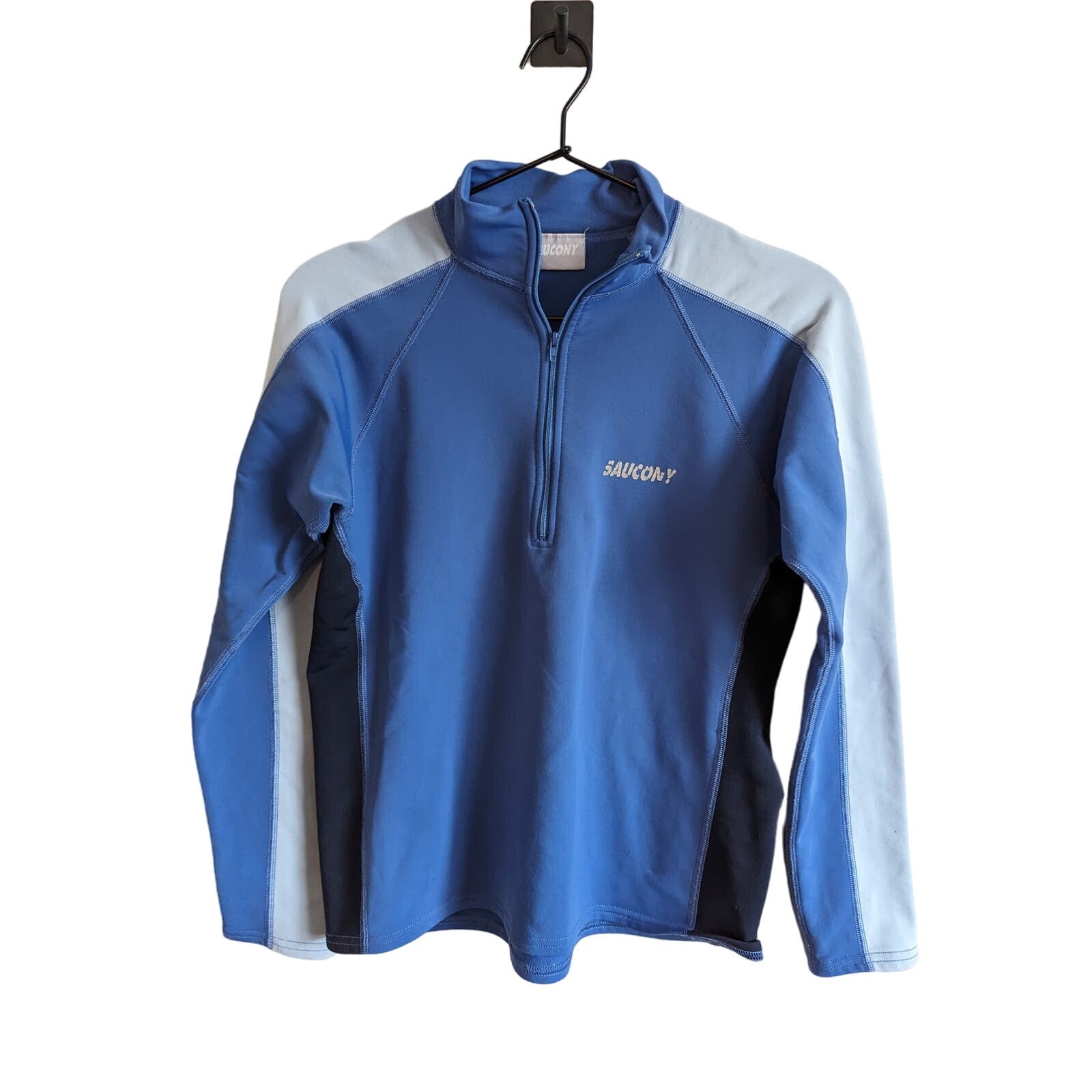 This Saucony women's cycling jacket is a stylish and practical addition to your cycling gear. The periwinkle purple color gives it a pop of personality, while the 1/4 zip design allows for easy ventilation during your ride. The jacket is made with high quality materials to ensure durability and comfort. It is available in size small and perfect for any active woman.