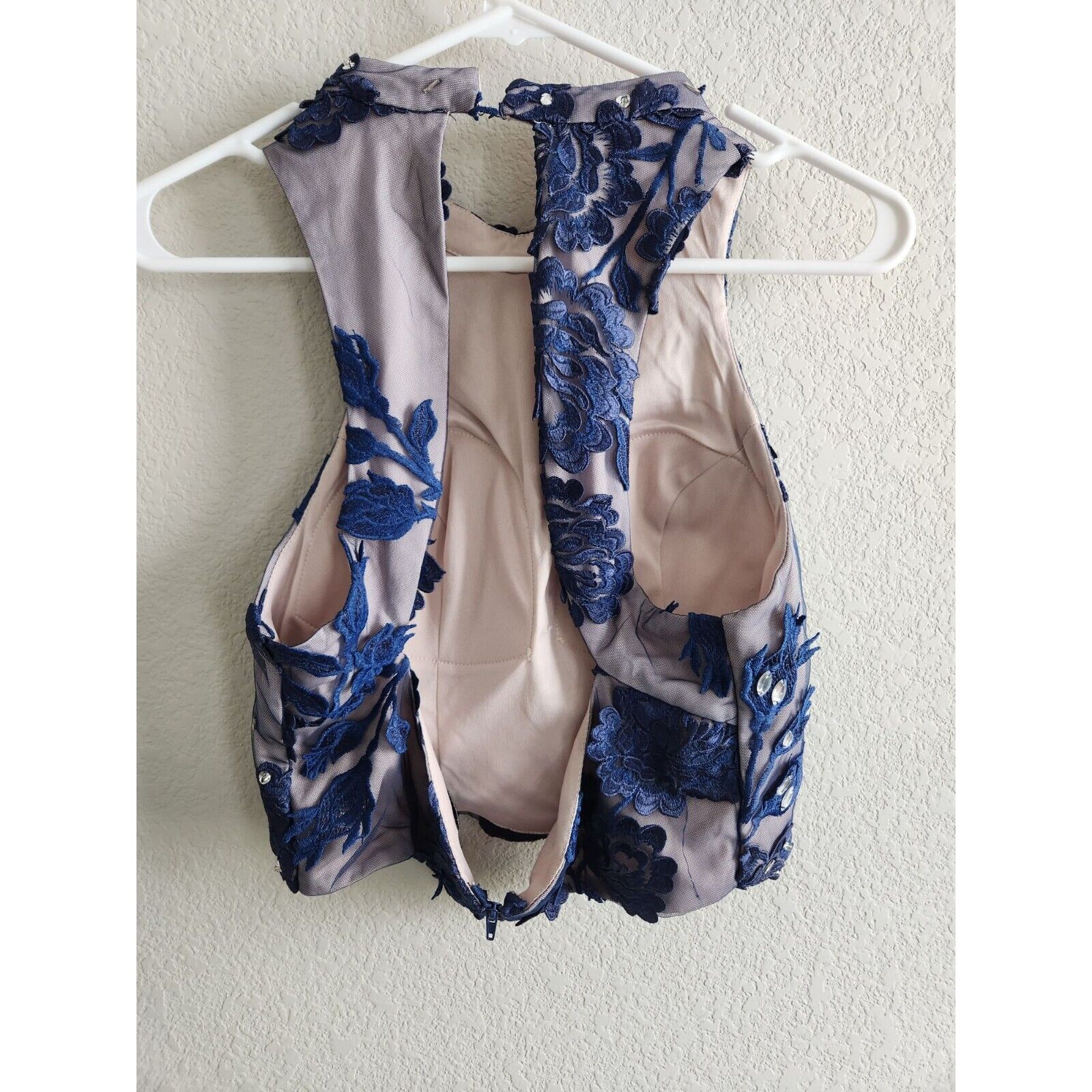 Sequin Hearts Juniors Sz 11 Cropped Formal Top Embroidered Rhinestone Blue