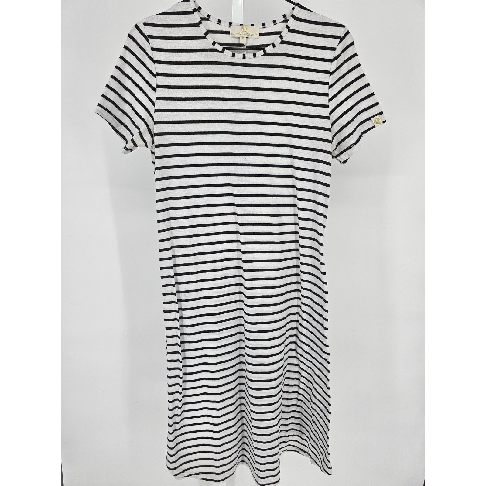 Simply Southern Womens Sz S Knee Length Short Sleeve Dress Black White striped