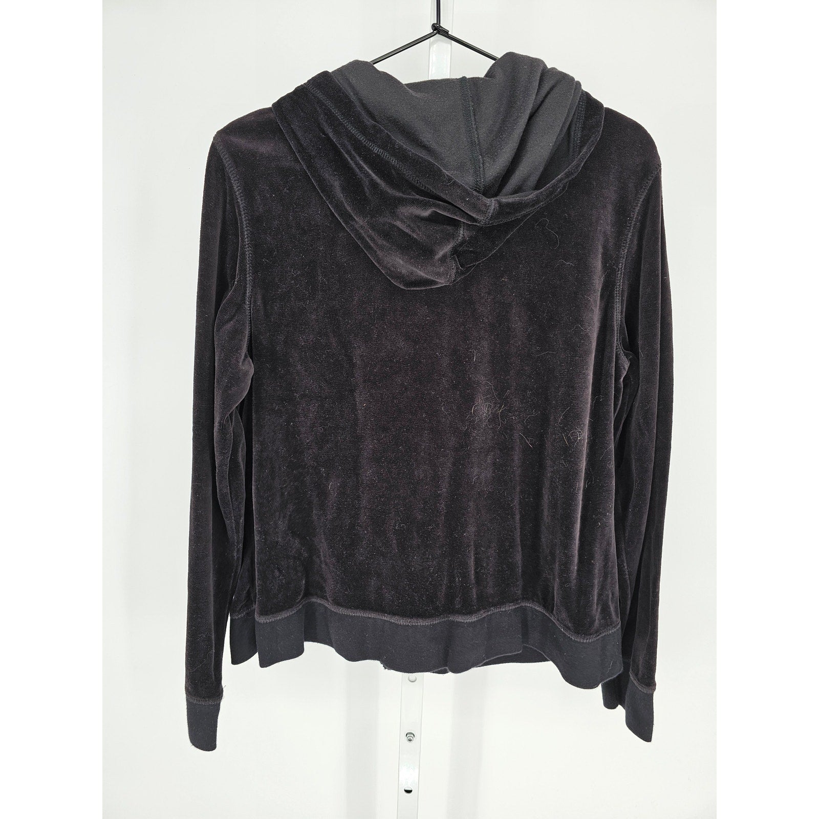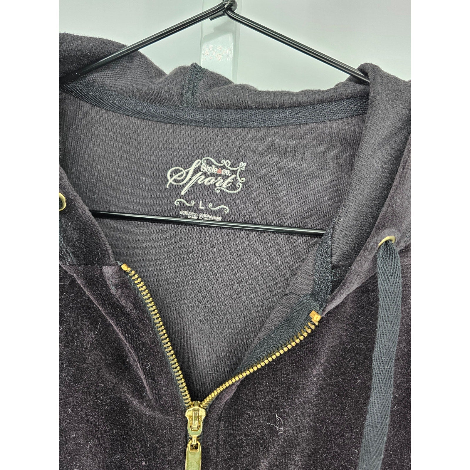 Style & Co Womens Sz L Full Zip Velour Track Jacket Black and Gold Hooded