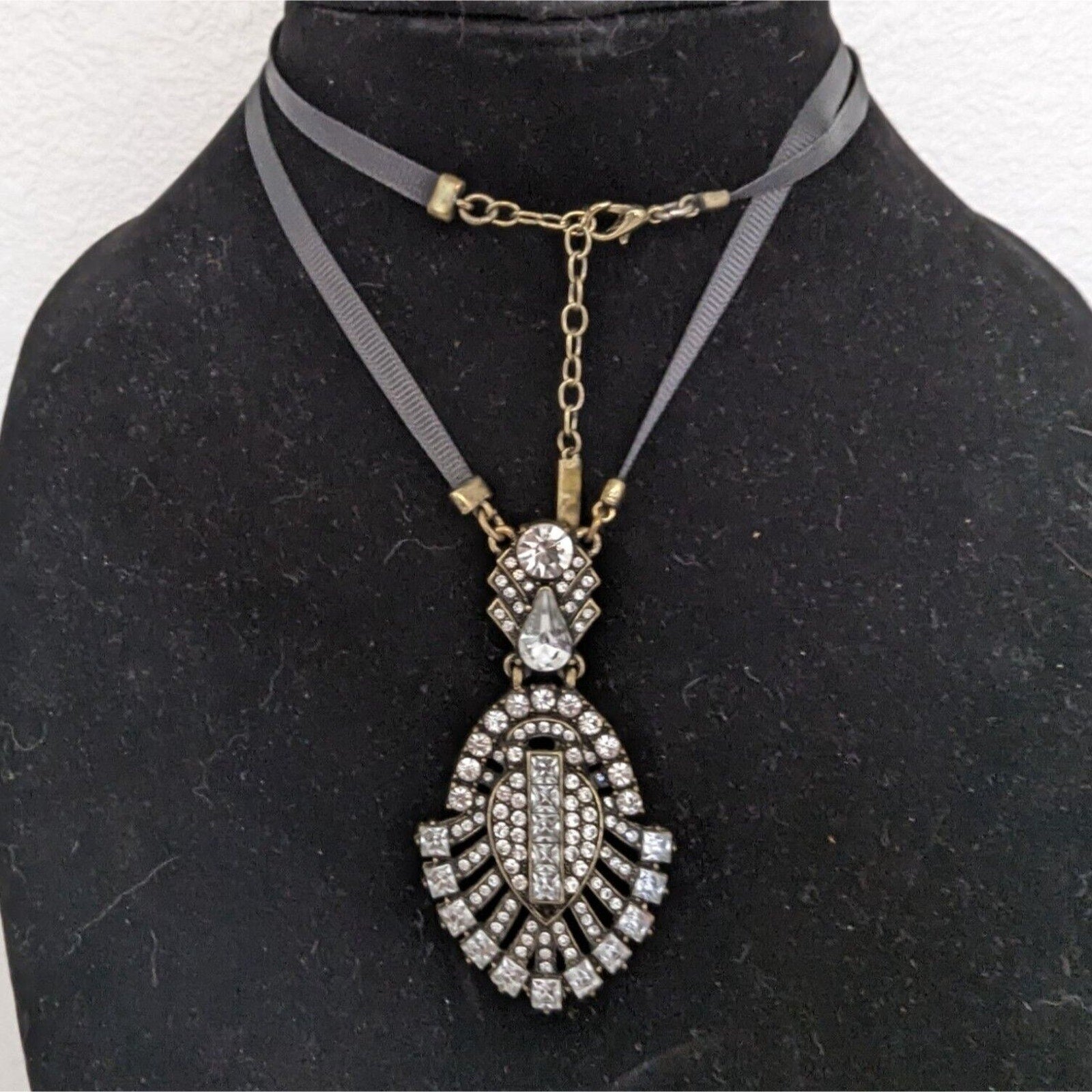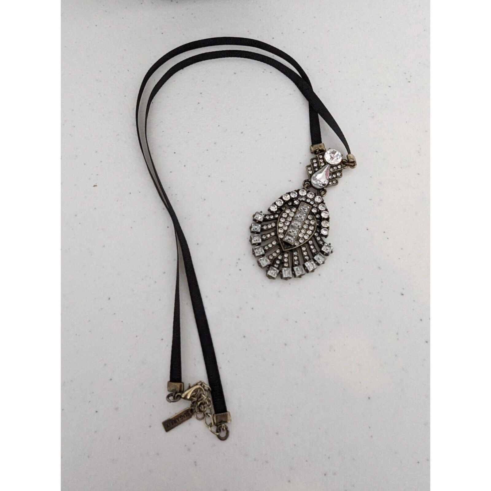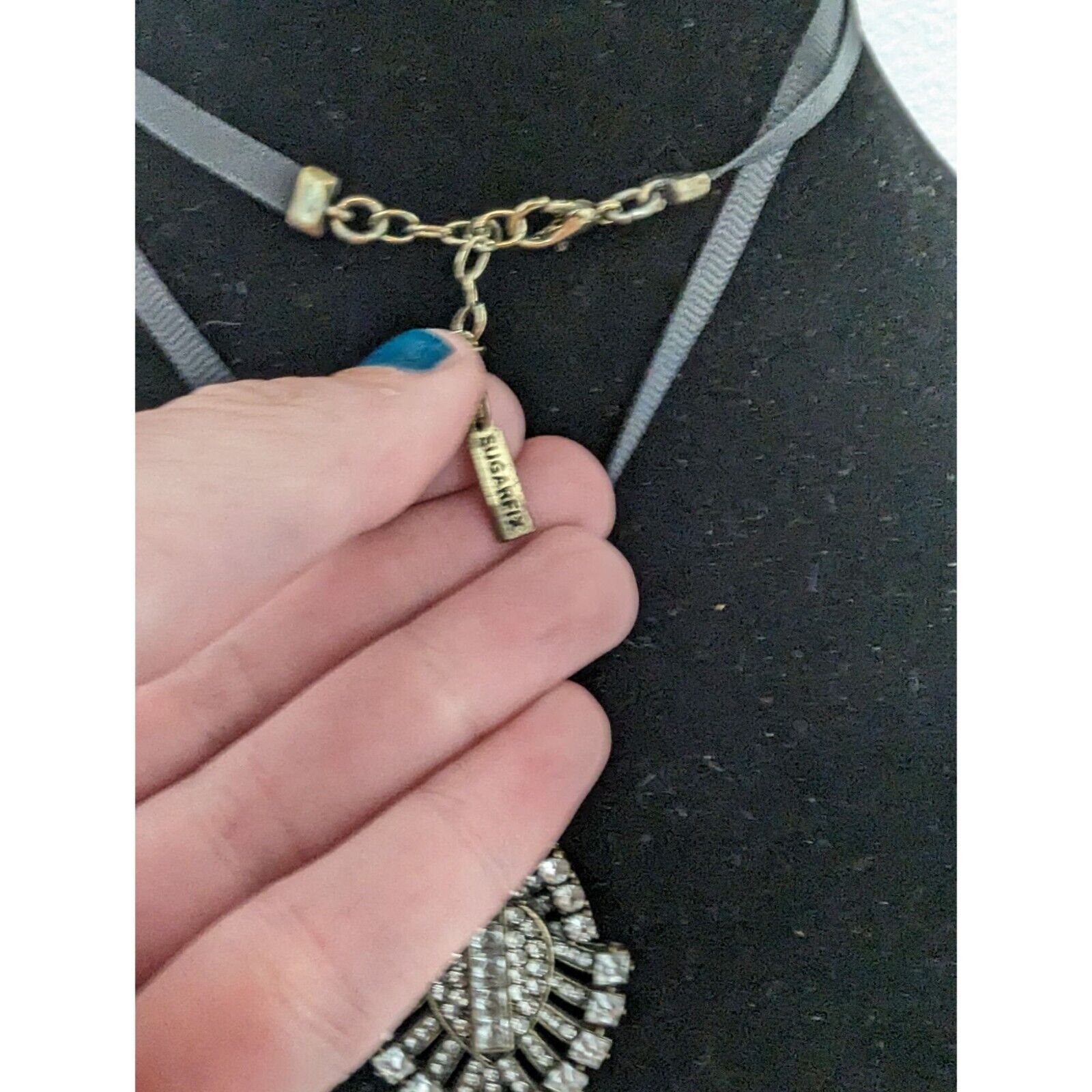 Sugarfix Womens Ribbon Style Rhinestone Necklace Long Silver White Gemstone