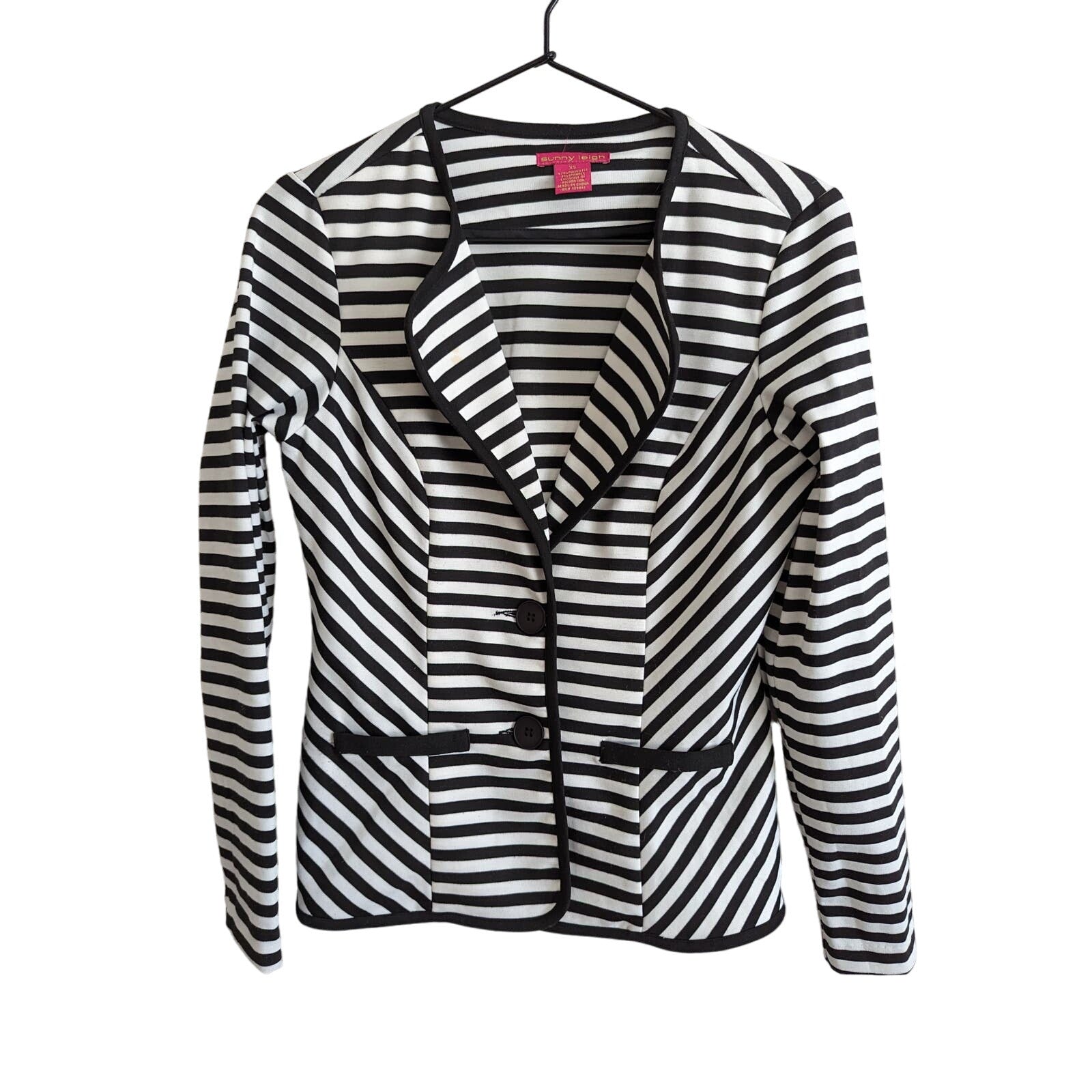 Sunny Leigh Womens Sz XS 2 Button Blazer Black White Striped