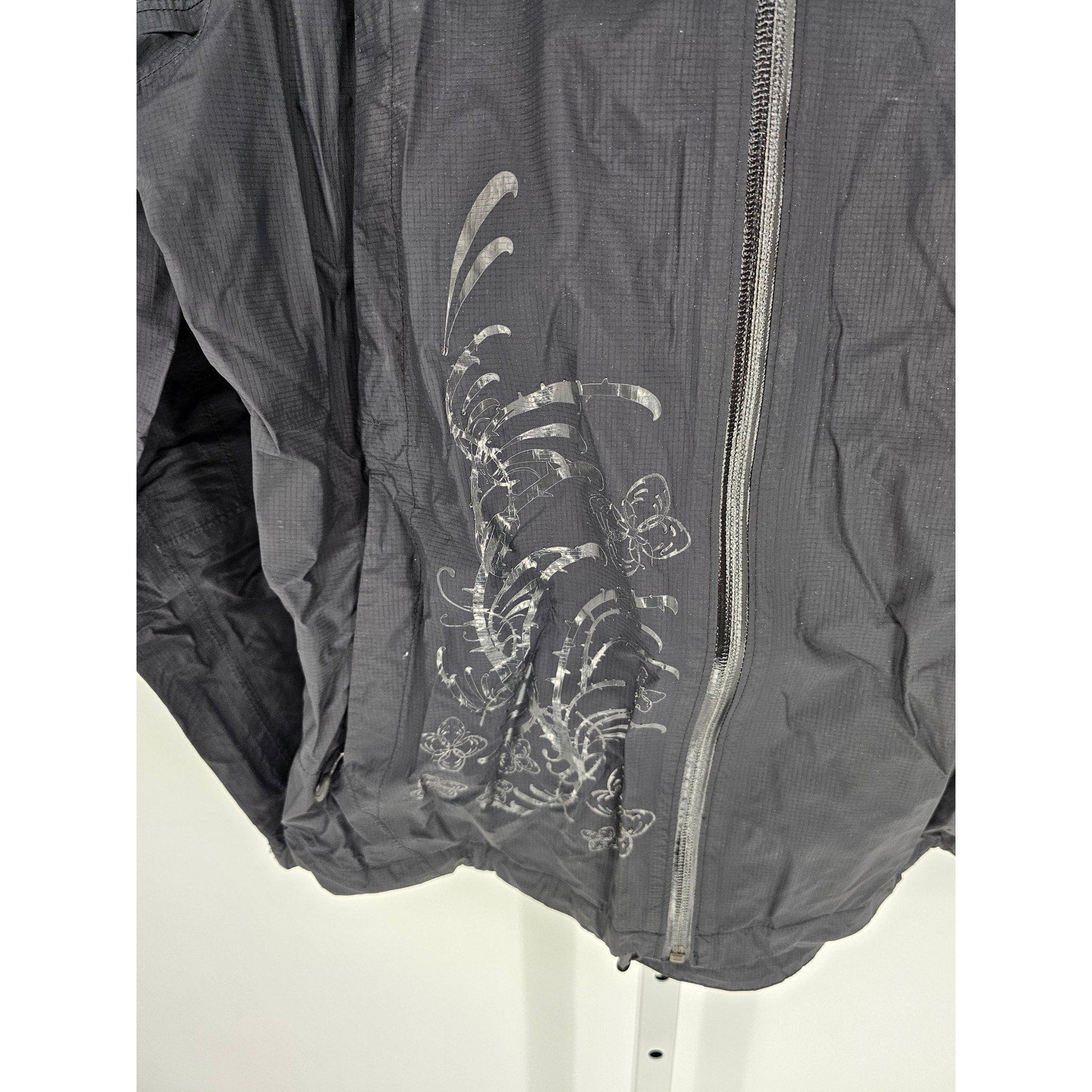 The North Face Womens Sz L Full Zip Nylon Windbreaker Jacket Black Floral