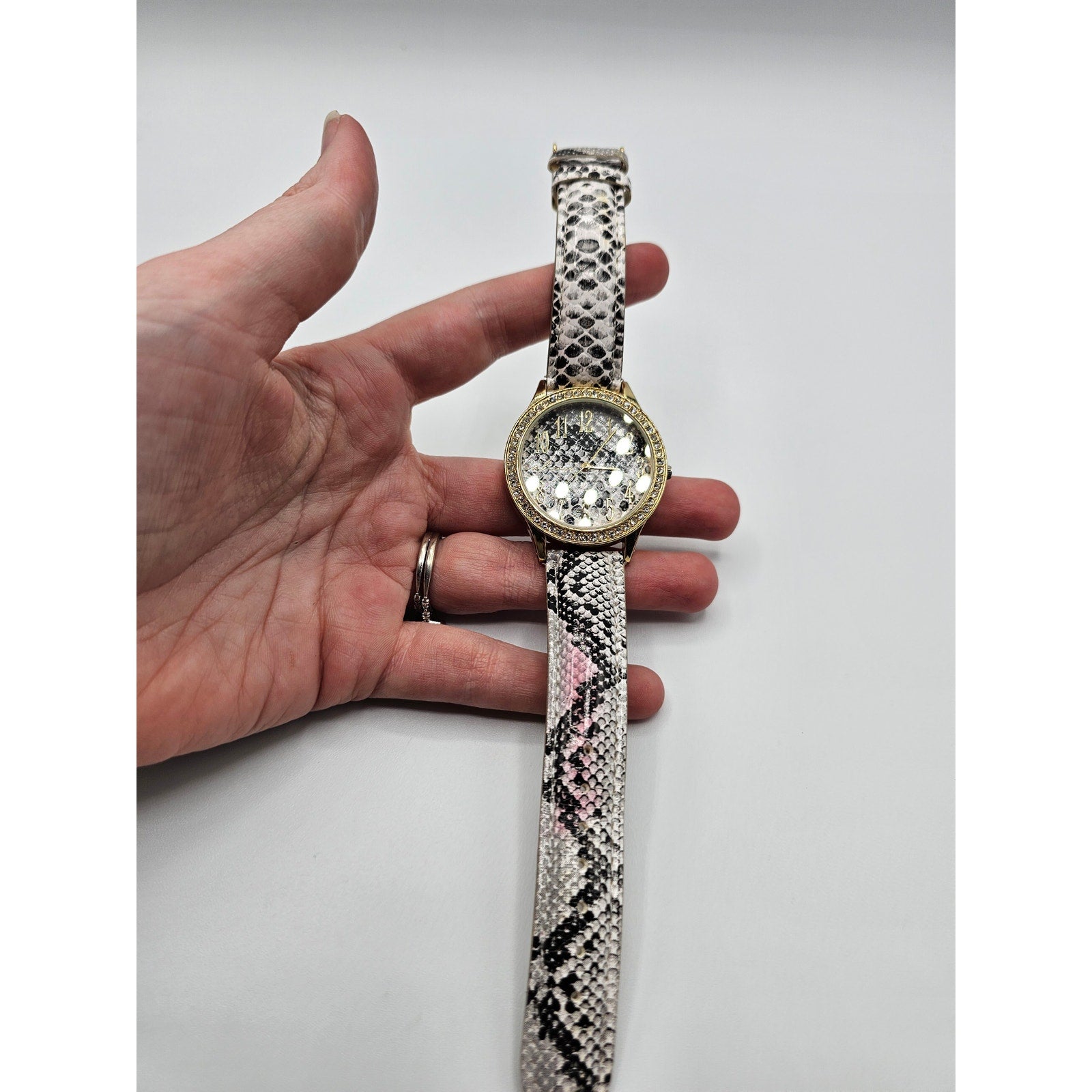 Vianova Womens Watch Wristwatch Vintage Y2K Snakeskin Print Gray White