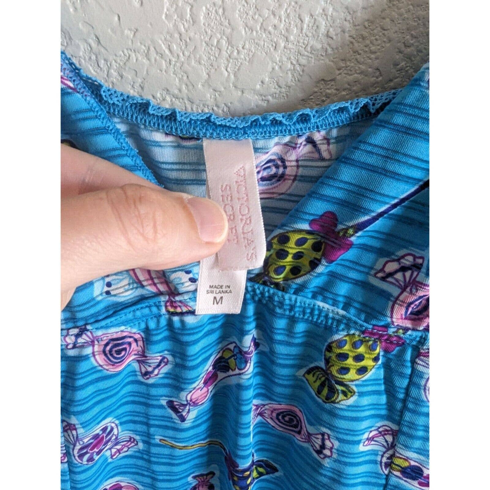 Victorias Secret Camisón Talla M Para Mujer Correa De Espagueti Con Estampado De Caramelo Azul