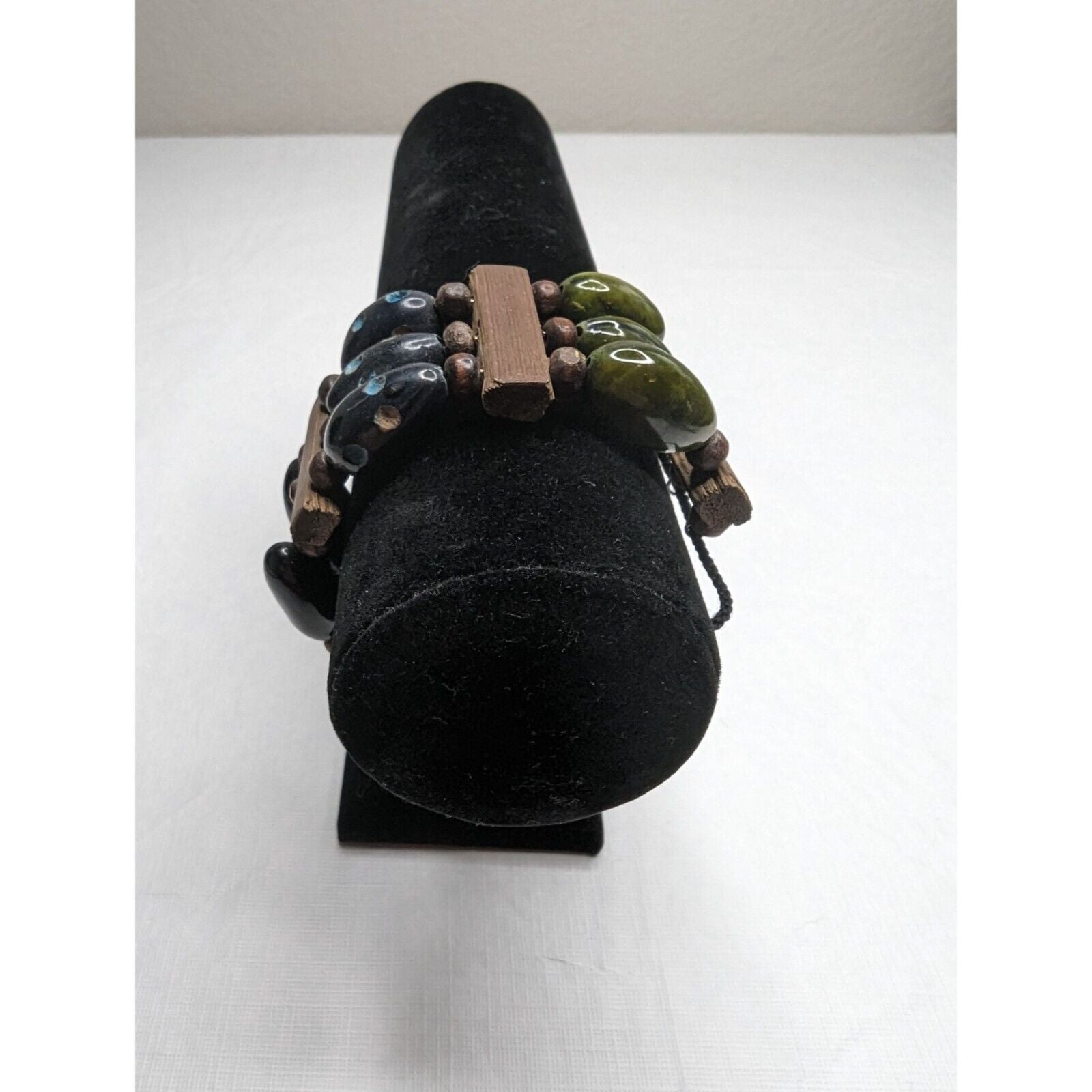 Vintage 1960s Womens Beaded Bangle Bracelet Layered Wooden Beads