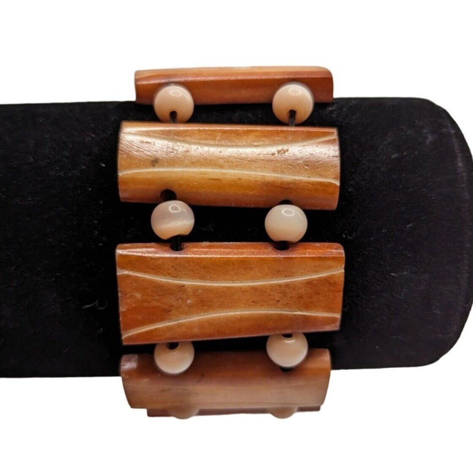 Vintage 1970s Wood and Glass Beaded Bangle Bracelet