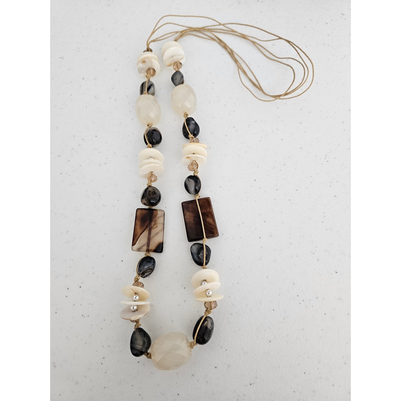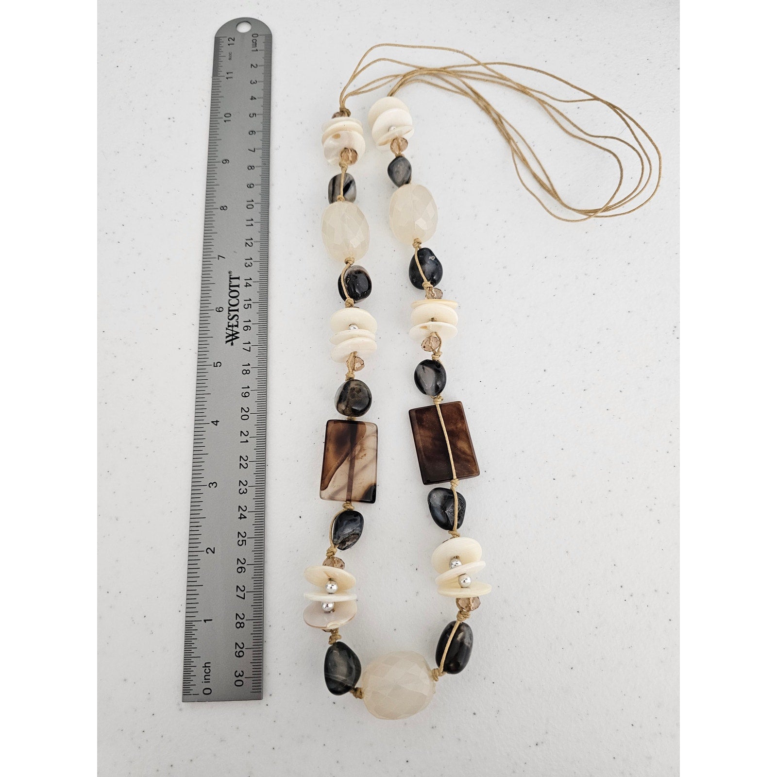 Vintage 1980s Single Strand Glass Beaded Necklace Geometric Boho