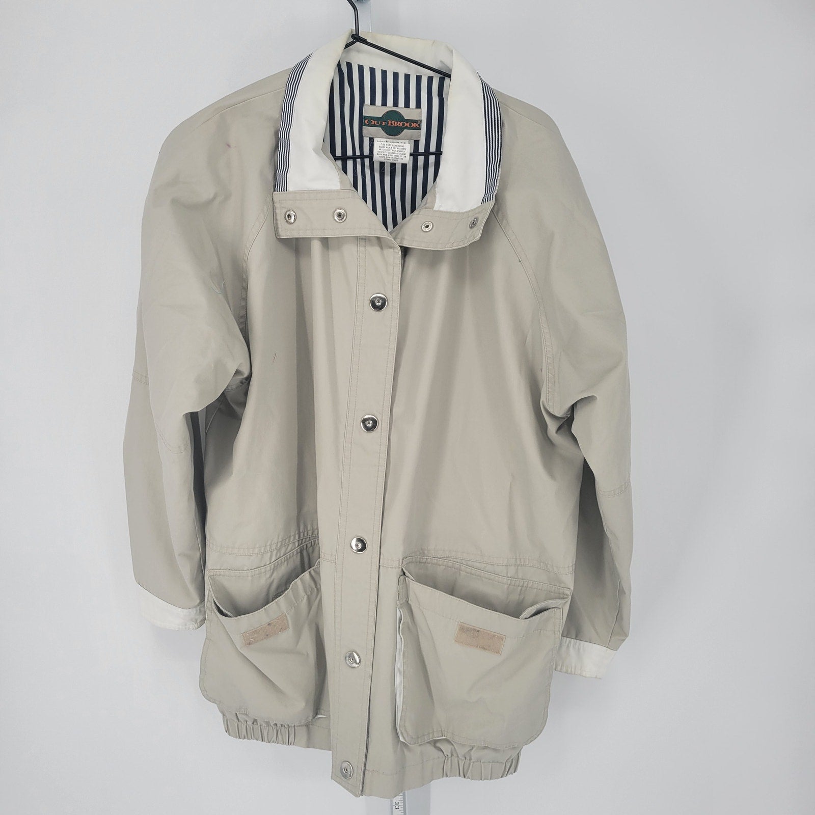 This vintage Outbrook women's jacket from the 1990s is a must-have for any antique collector. With its light beige color and button front, it exudes a classic and timeless style that will never go out of fashion. The jacket is perfect for any occasion, whether you're dressing up for a night out or keeping it casual during the day. The size of the jacket is medium and it has a slouchy fit, making it comfortable and easy to wear. The jacket also has a unique button front design that adds an extra touch of style to the overall look. Whether you're a fan of vintage fashion or simply looking for a statement piece, this Outbrook jacket is sure to impress.
