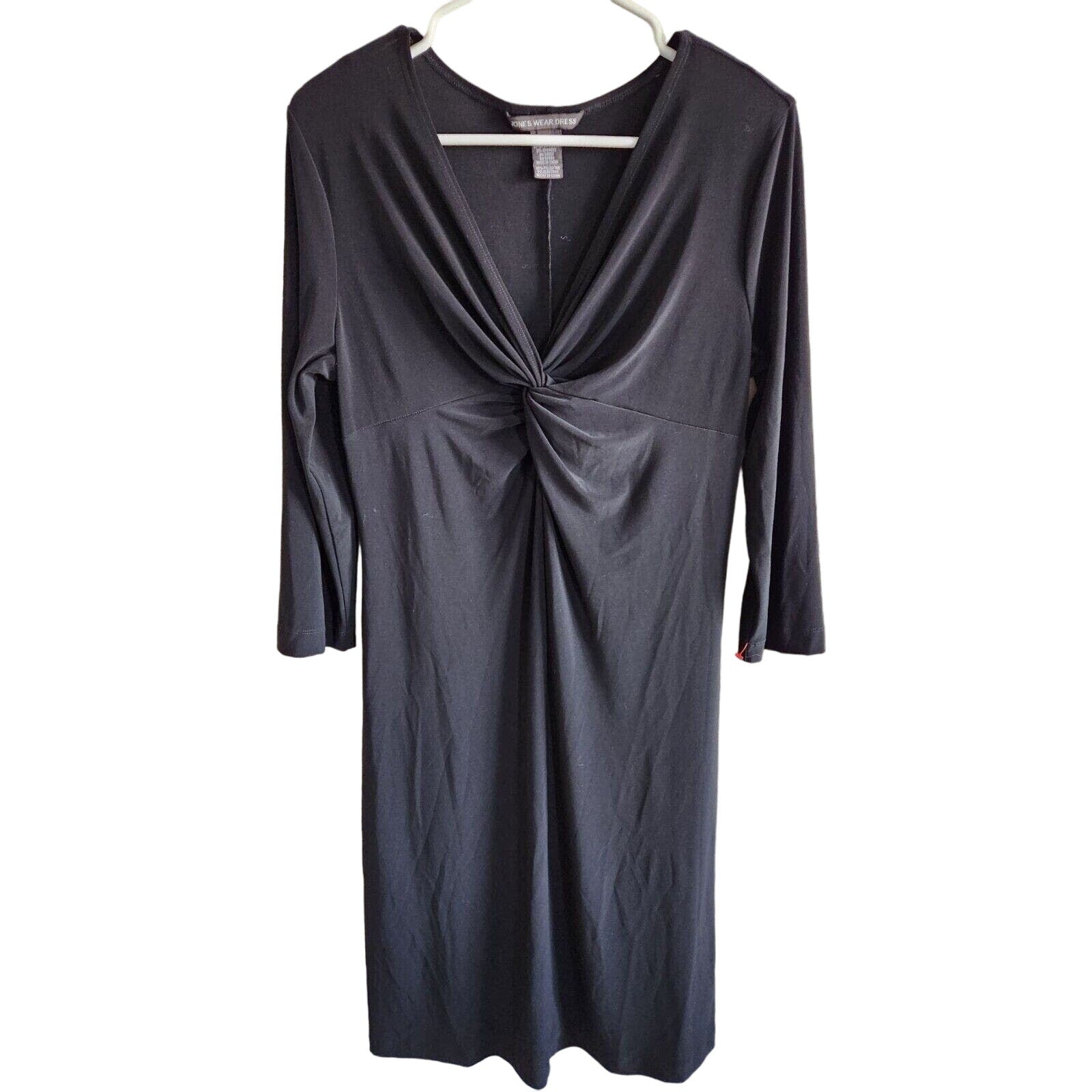 Vintage Jones Wear Dress Womens Sz 12 Midi Solid Black Long Sleeve Dress