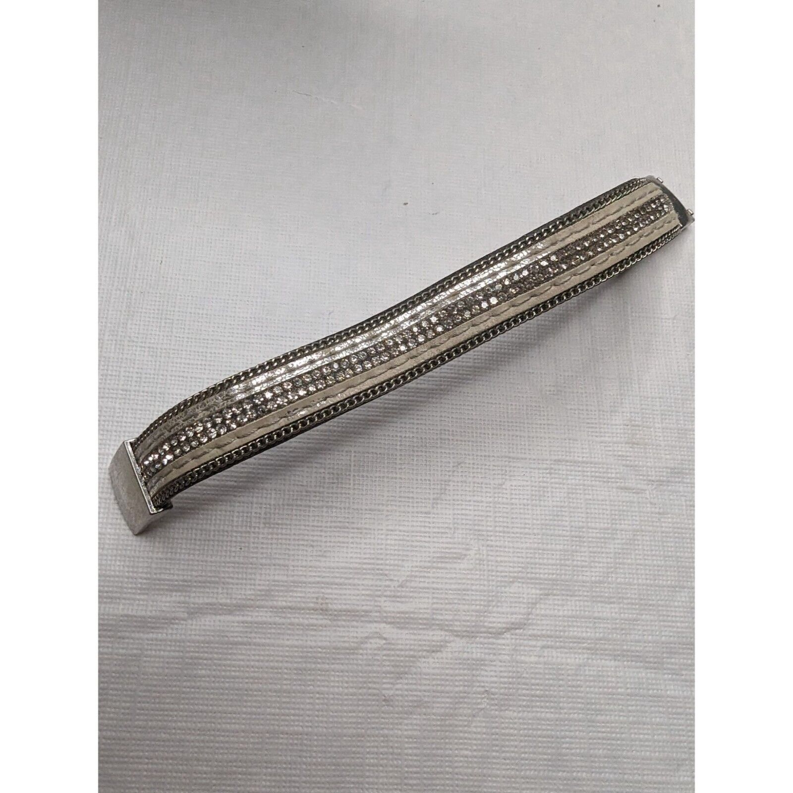 Vintage Leather and Rhinestone Bangle Cuff Bracelet Magnetic Closure Boho
