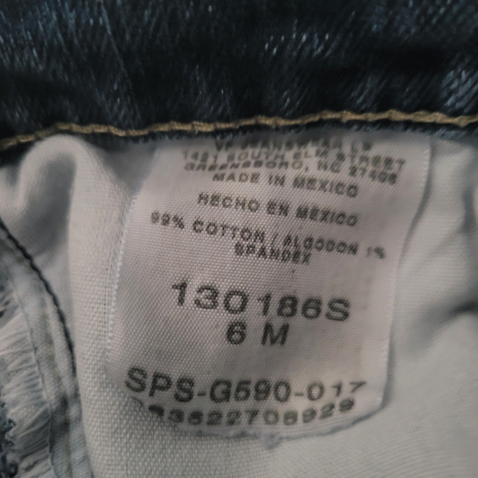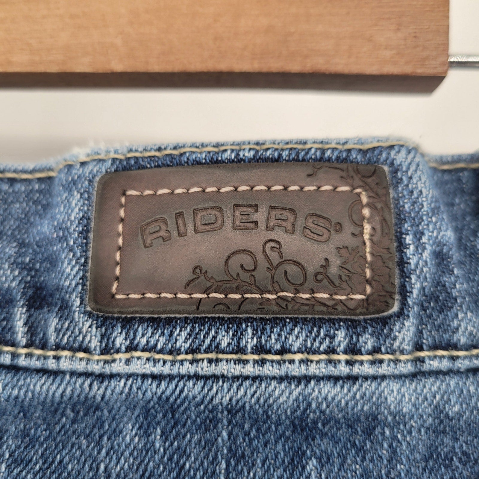 This vintage pair of blue jeans from the 1990s is a must-have for any antique clothing enthusiast. The high waist and slim leg design are a classic combination that flatters any body type. The jeans are made by Riders by Lee, a trusted brand known for their quality denim. With a size of 6, these jeans are perfect for any woman looking for a comfortable and stylish pair of blue jeans. The mom style is a timeless look that will never go out of fashion. These jeans are perfect for any occasion and can be dressed up or down. Don't miss out on the chance to add this classic pair of blue jeans to your wardrobe.