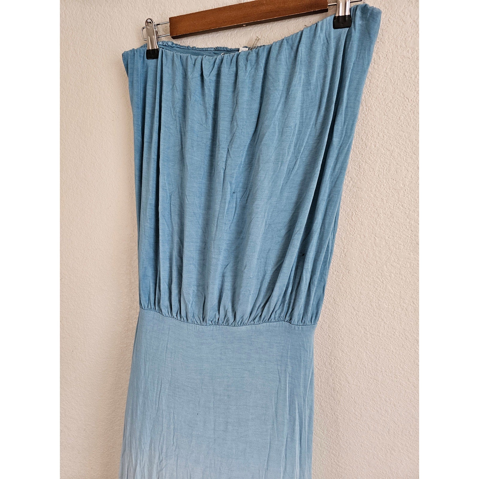 This stunning blue tie-dye jersey knit maxi dress is perfect for any young, fabulous, and broke woman looking to elevate her wardrobe. The dress is designed with a sleeveless cut and is available in size small. Its unique dye pattern adds a touch of chic to any occasion, whether it be a casual day out or a formal event. Crafted with the utmost care, this dress promises to be a lasting addition to any collection. Its soft and comfortable fabric ensures that you'll look and feel your best. Don't wait any longer to add this must-have dress to your closet.