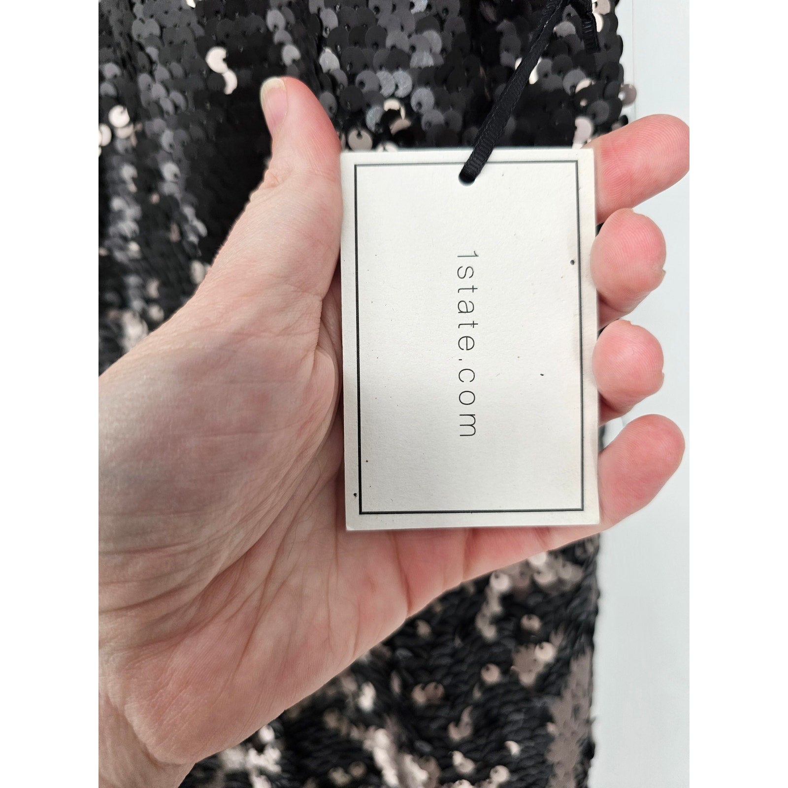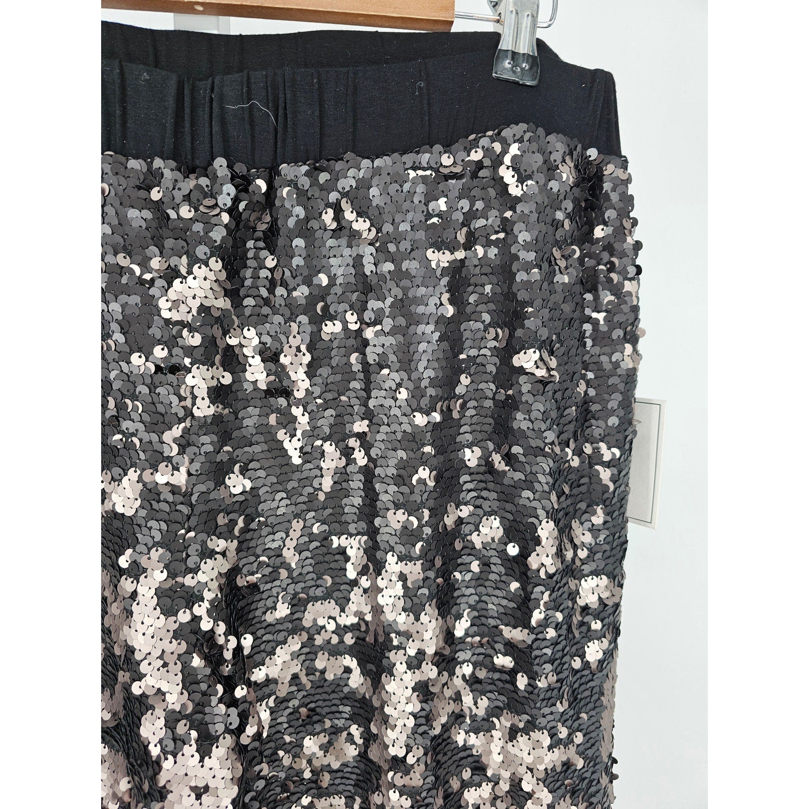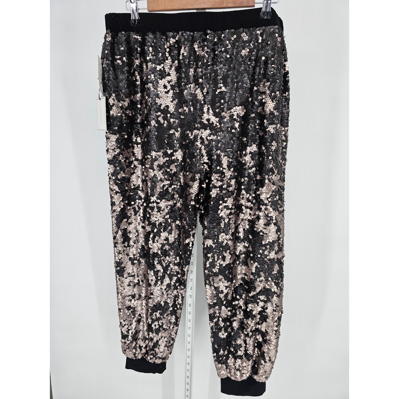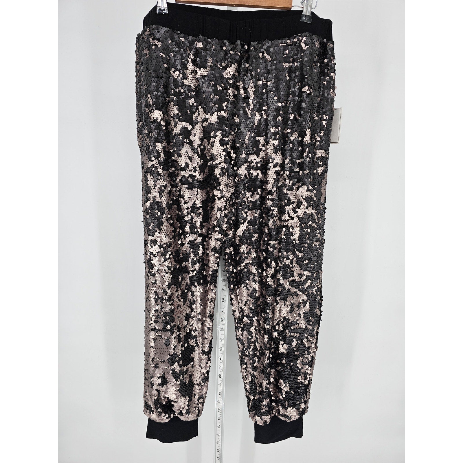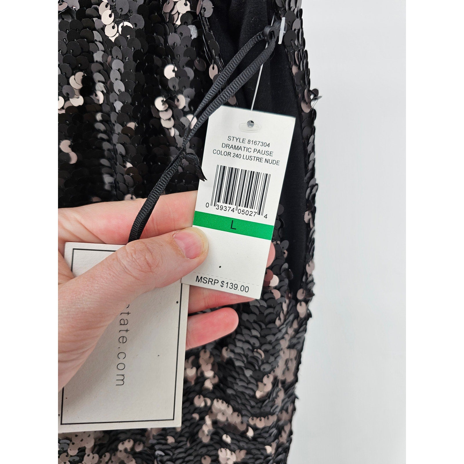 1. State Womens Sz L Pull On Full Sequin Pants Dramatic Pause Lustre Nude