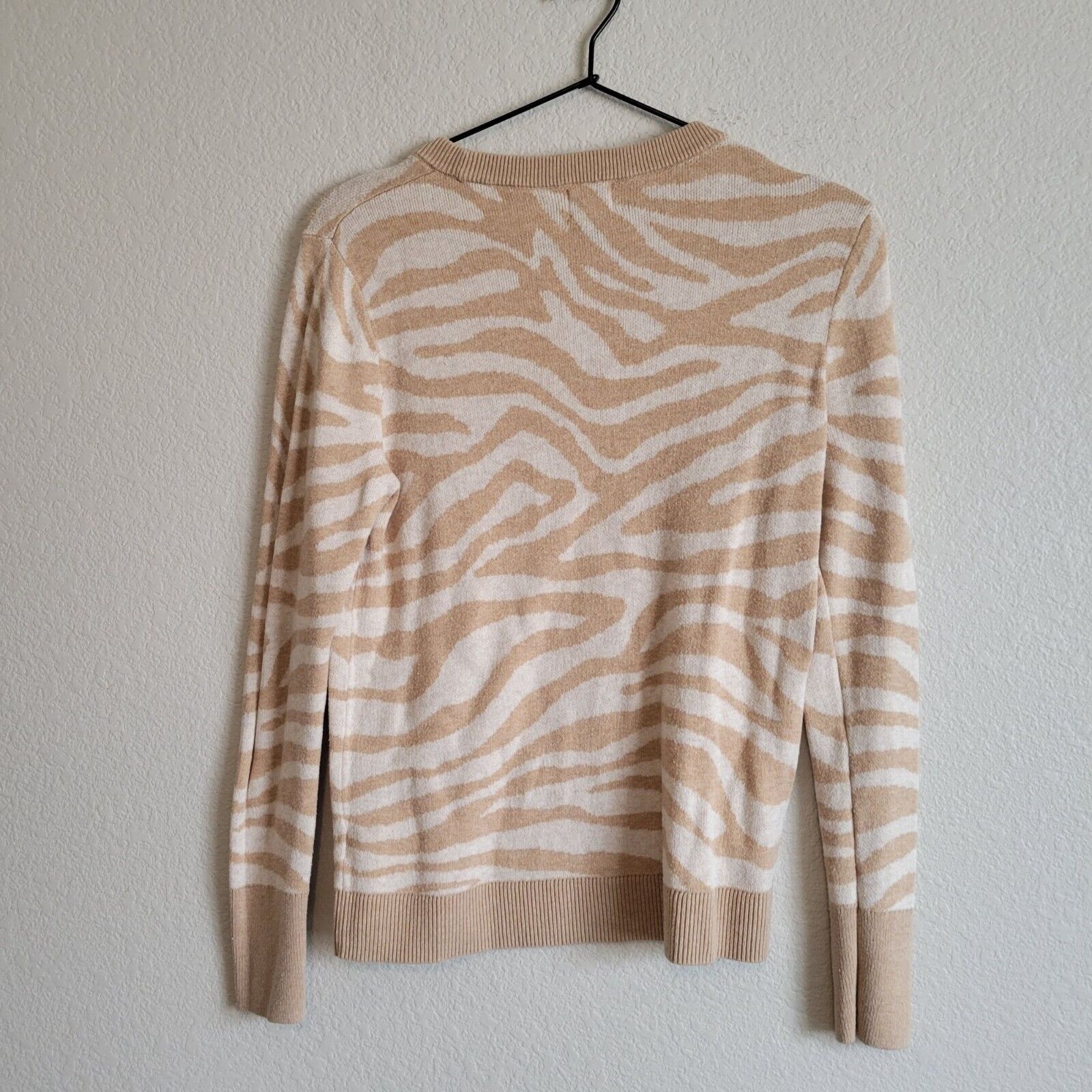 A New Day Womens Sz M Crew Neck Sweater Beige Zebra Animal Print