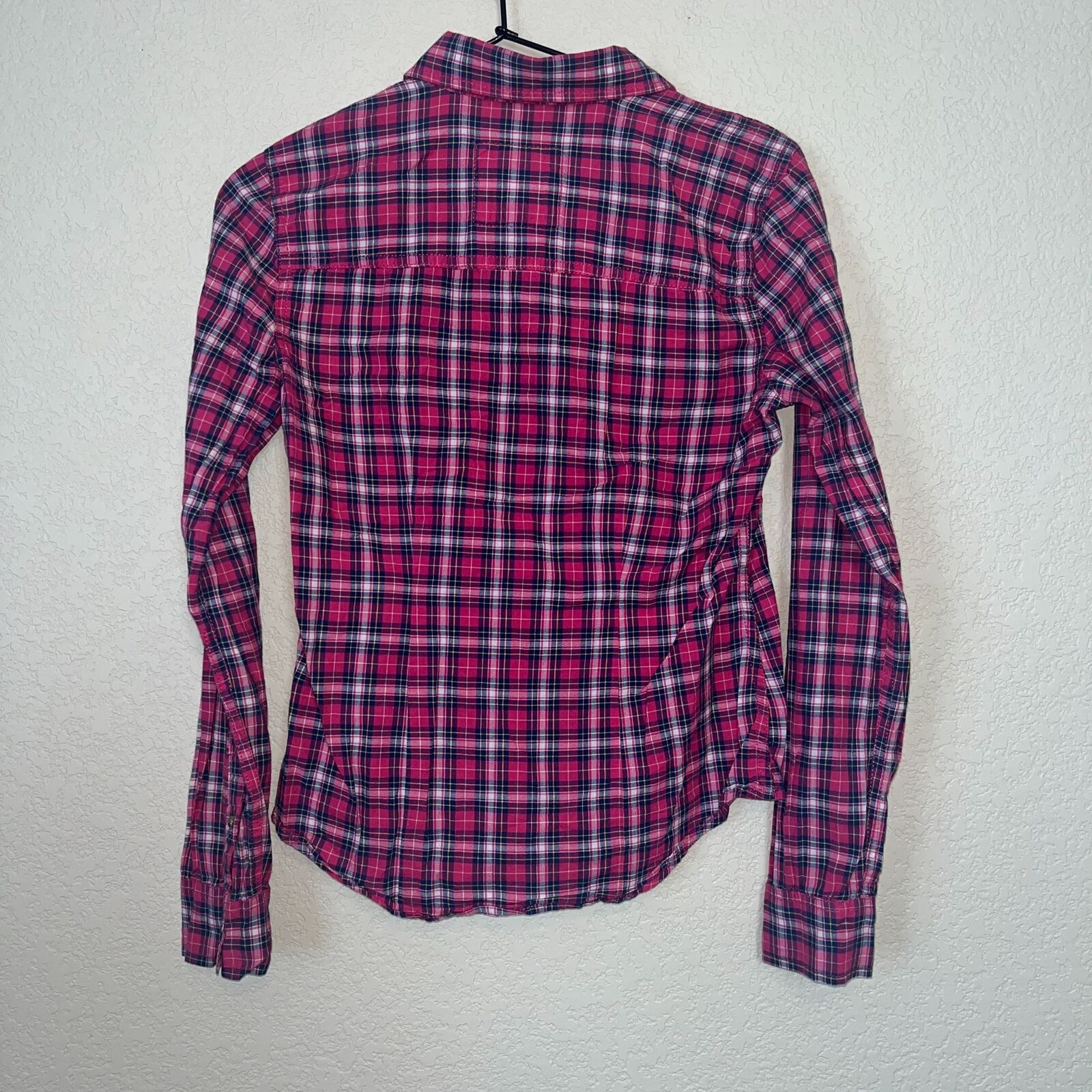 Abercrombie Kids Girls Sz XL Long Sleeve Button Down Plaid Shirt Pink Blue