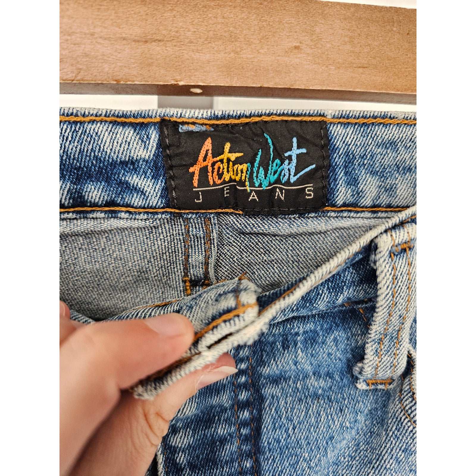 These vintage Action West jeans are a must-have for any fashion enthusiast. With a high waist and tapered legs, they offer a timeless style that is perfect for any occasion. The jeans are made from high-quality denim fabric and are designed to be comfortable and durable. They are a size 8 and are perfect for any woman who loves vintage fashion. These jeans are a great addition to any wardrobe and can be dressed up or down depending on the occasion. Whether you're looking for a casual outfit for the weekend or something a little more formal for a night out, these jeans are the perfect choice. So why wait? Order your vintage Action West jeans today and step out in style!