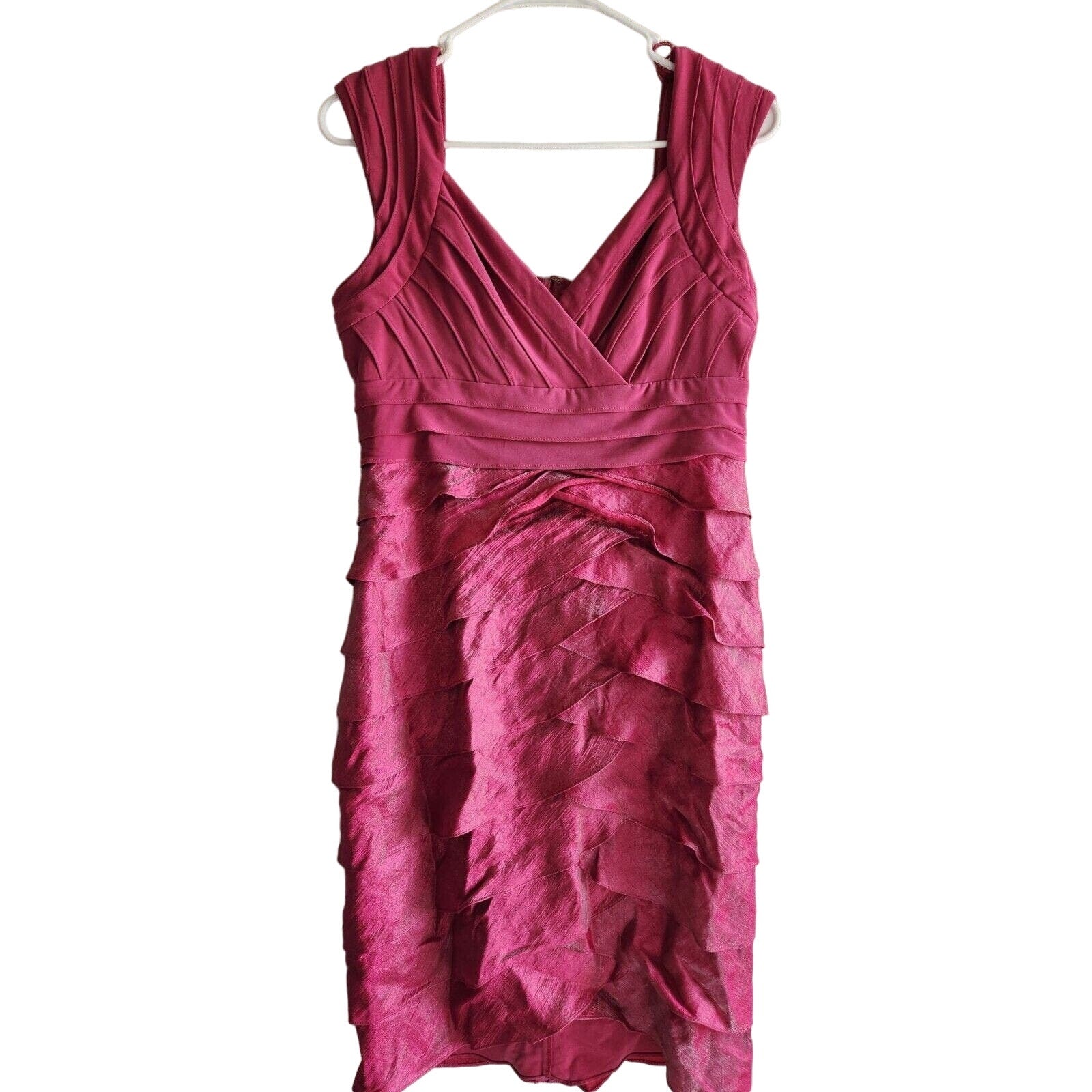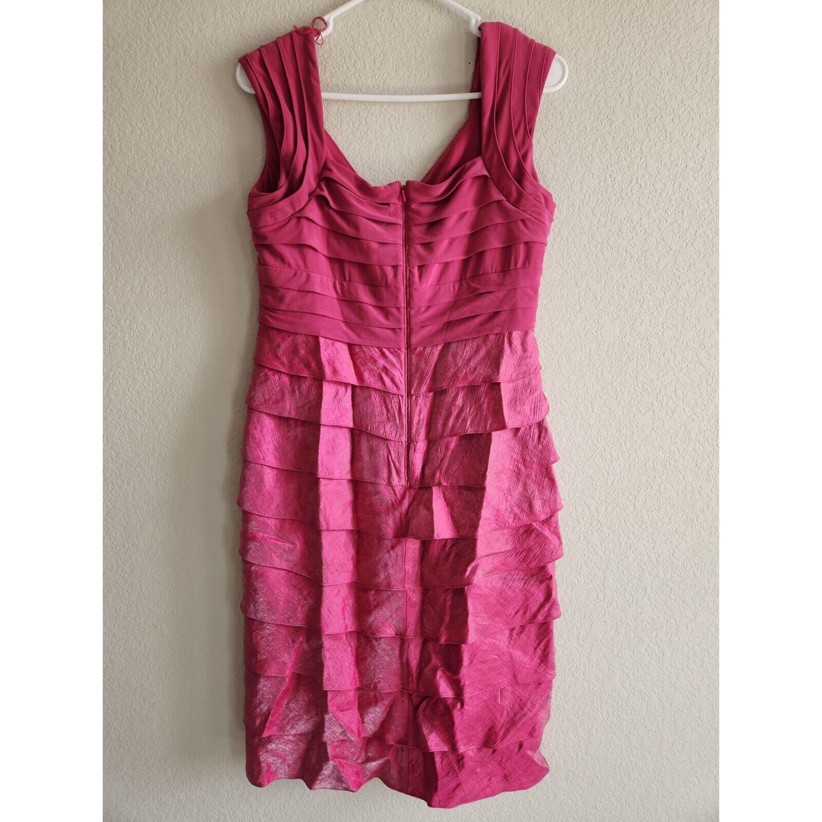 Adrianna Papell Womens Sz 8 Midi Formal Dress Tiered Bright Pink