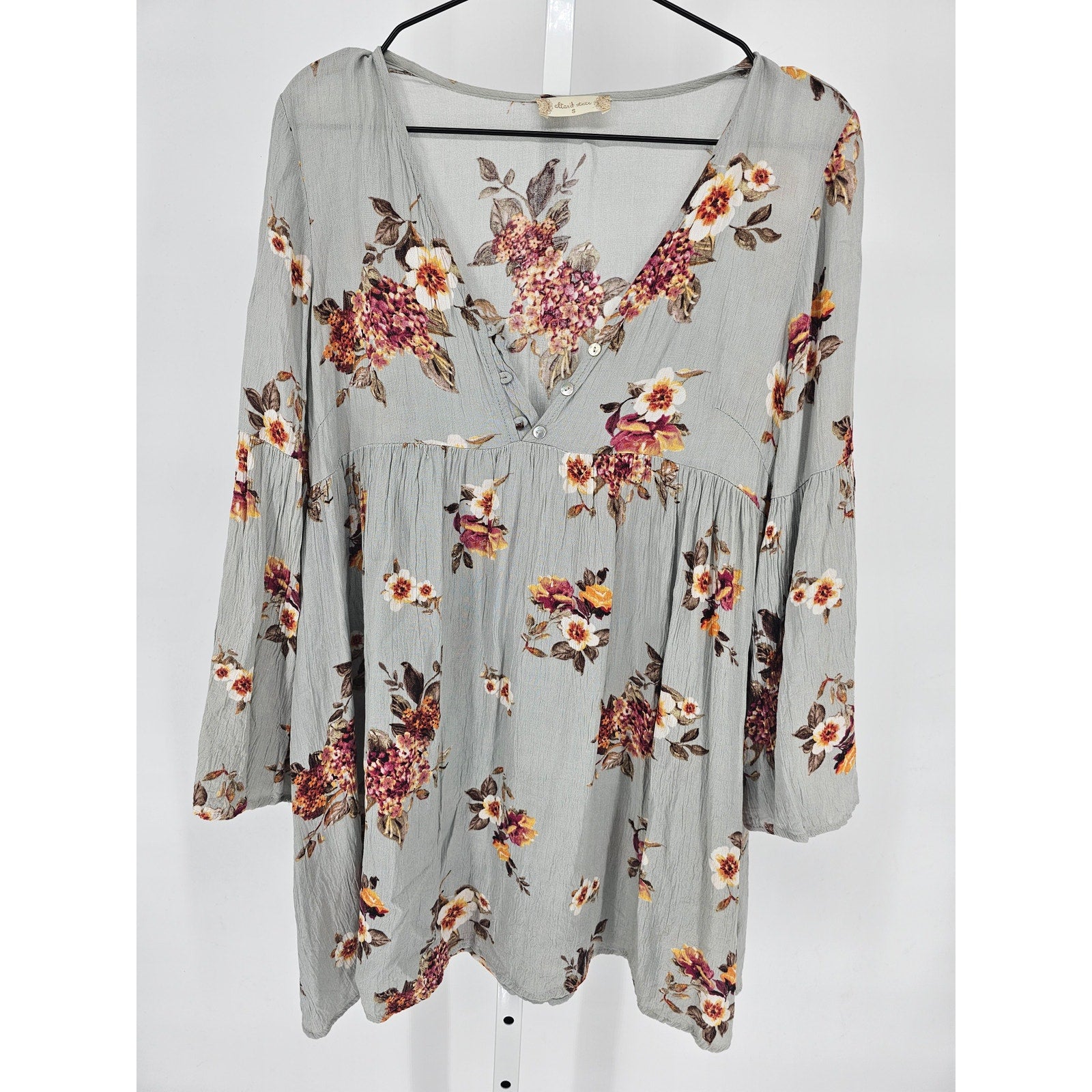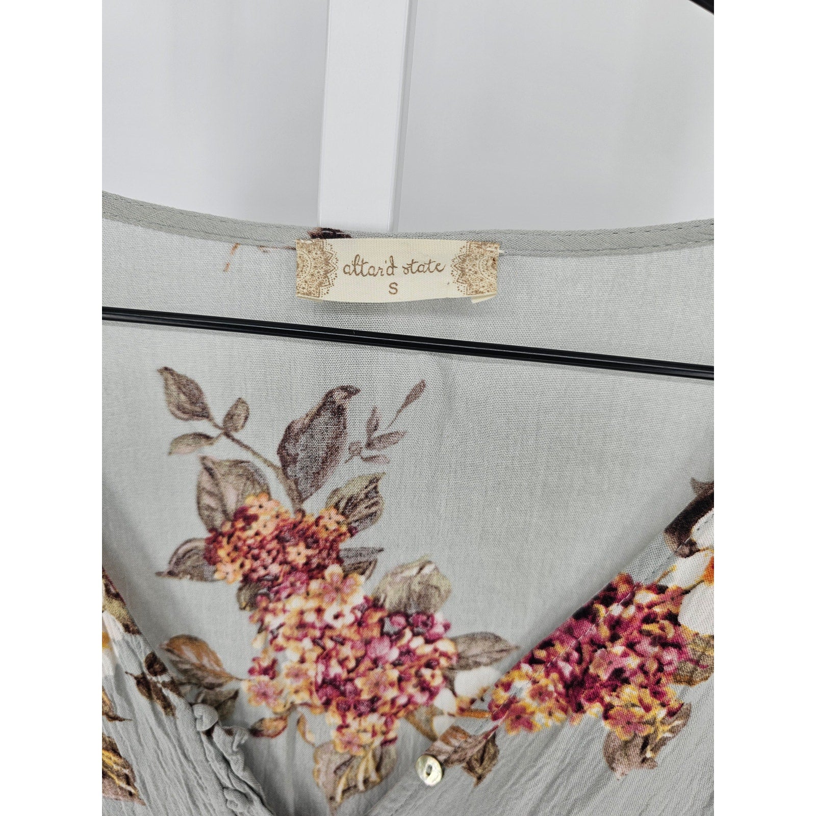 Altard State Womens Sz S Long Sleeve Tunic Mini Dress Light Blue Floral