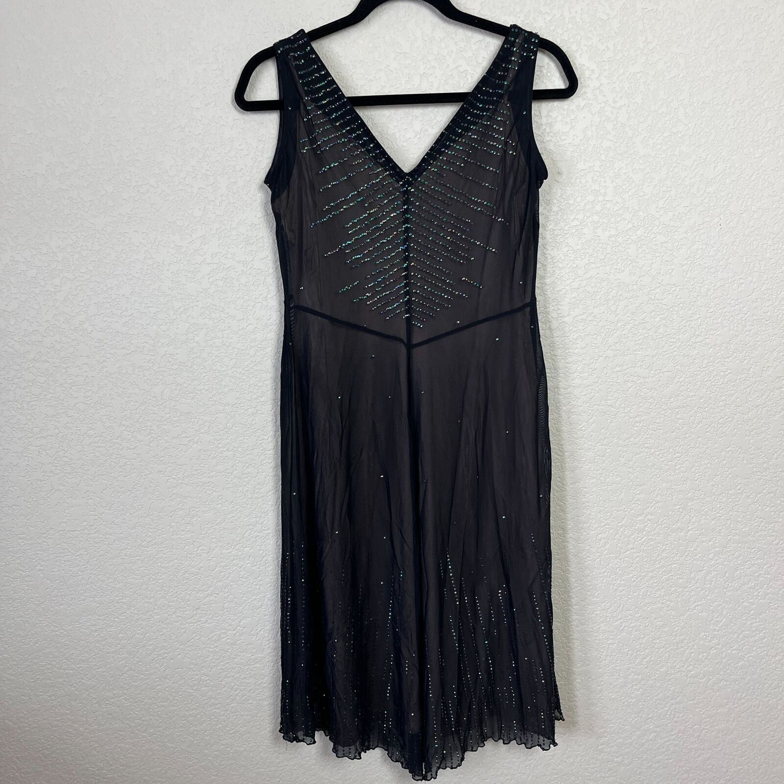 Amanda Smith Womens Sz 8 Black Sequin V Neck Formal Dress Knee Length
